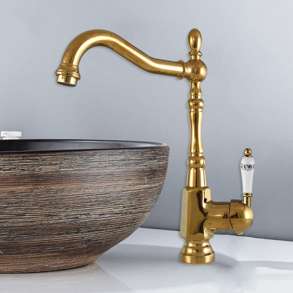 Gold Color Brass Bathroom Kitchen Sink Swivel Spout Faucet Mixer Tap egf062