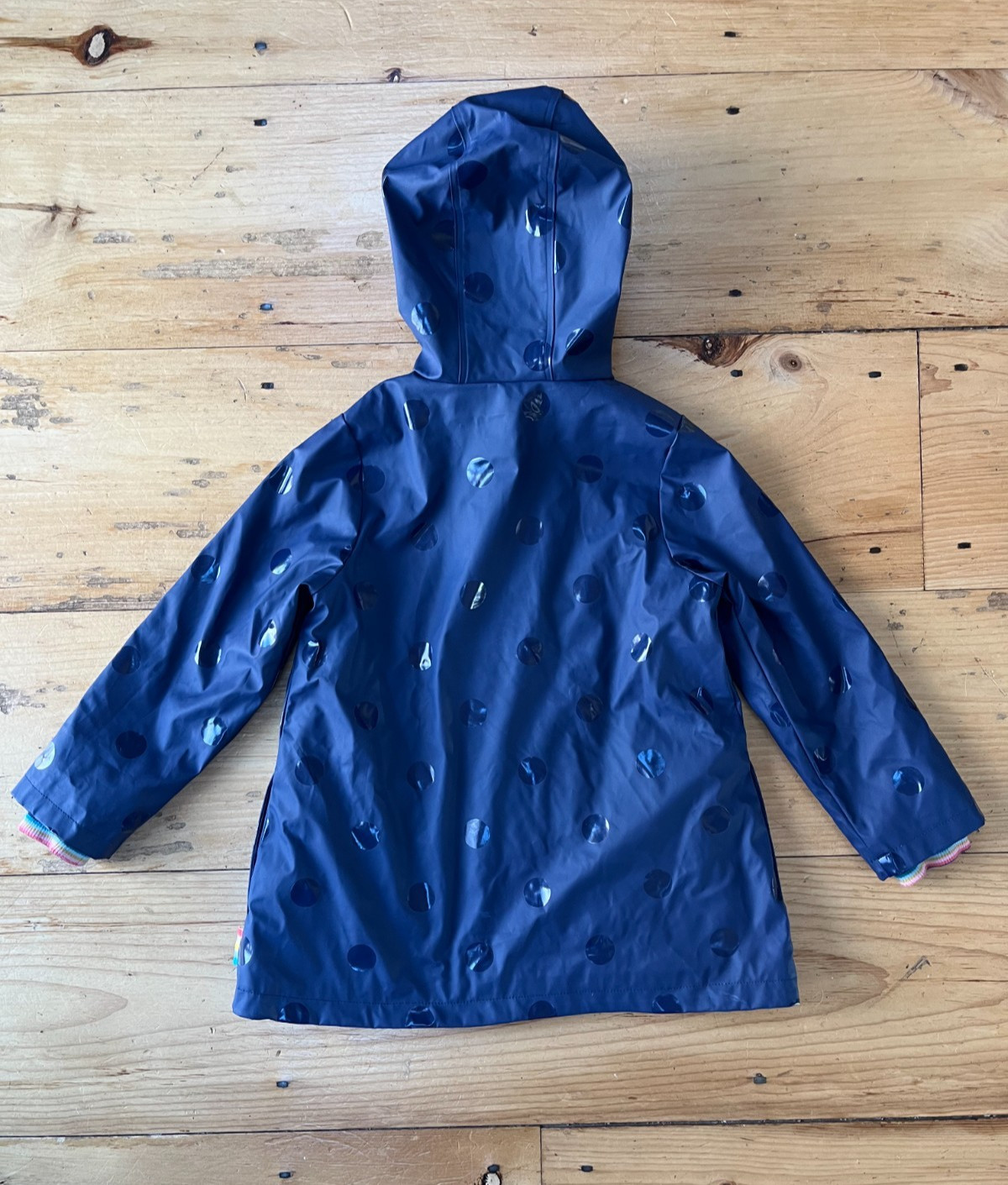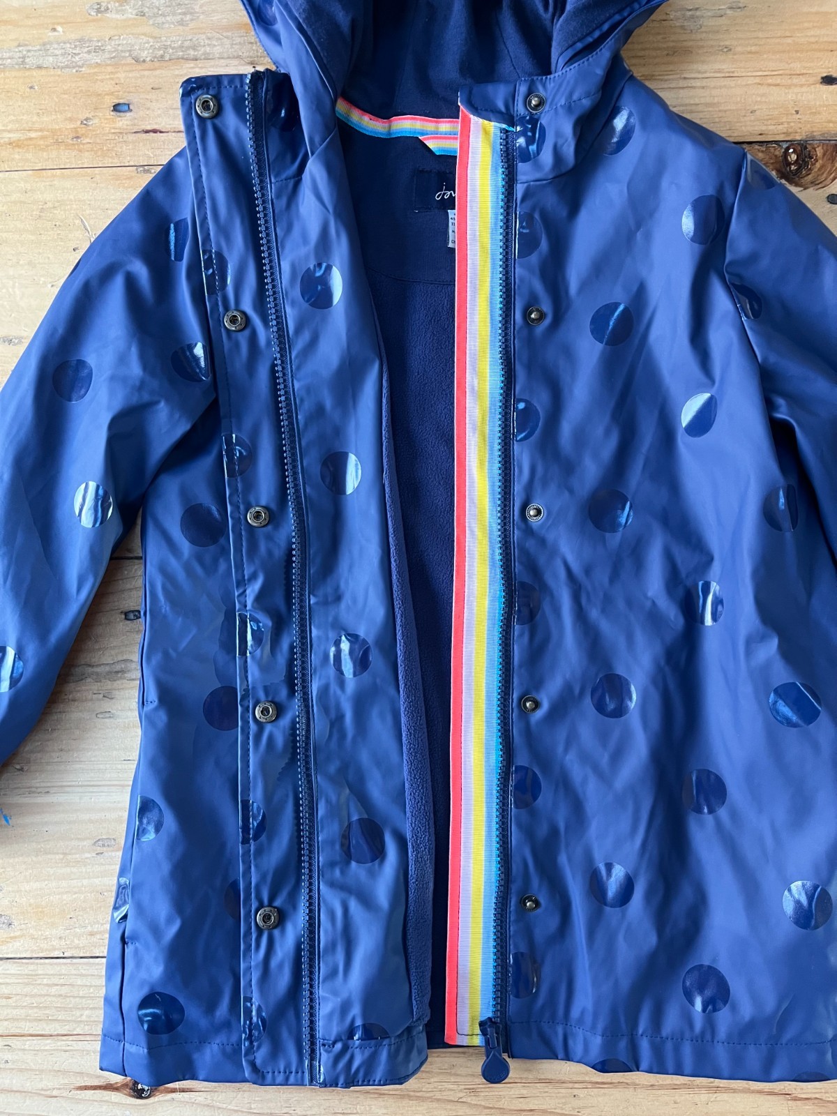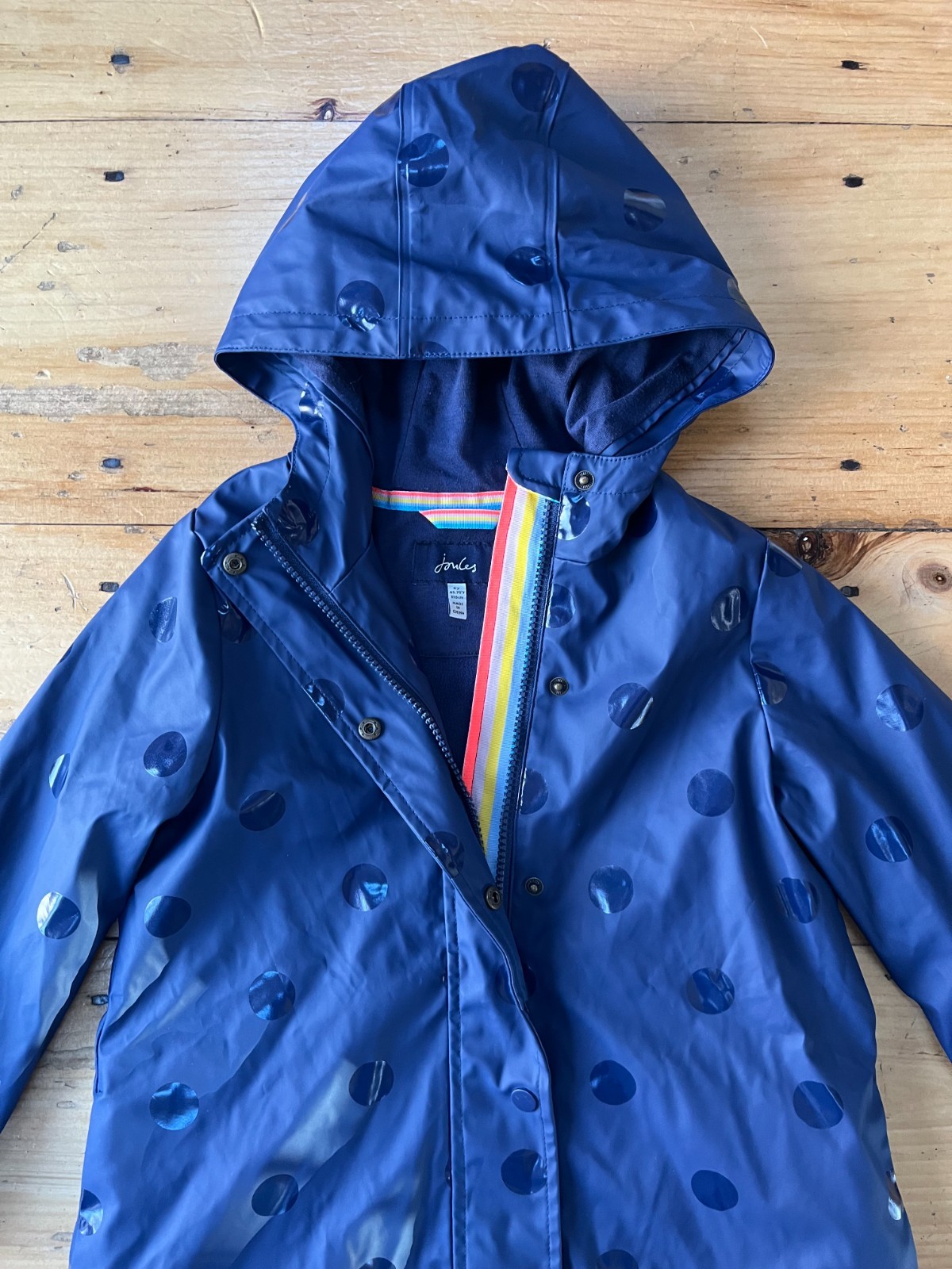 как выглядит Joules Girls Splashley Rain Coat Jacket, Navy Blue Polka Dot, Size 6 фото