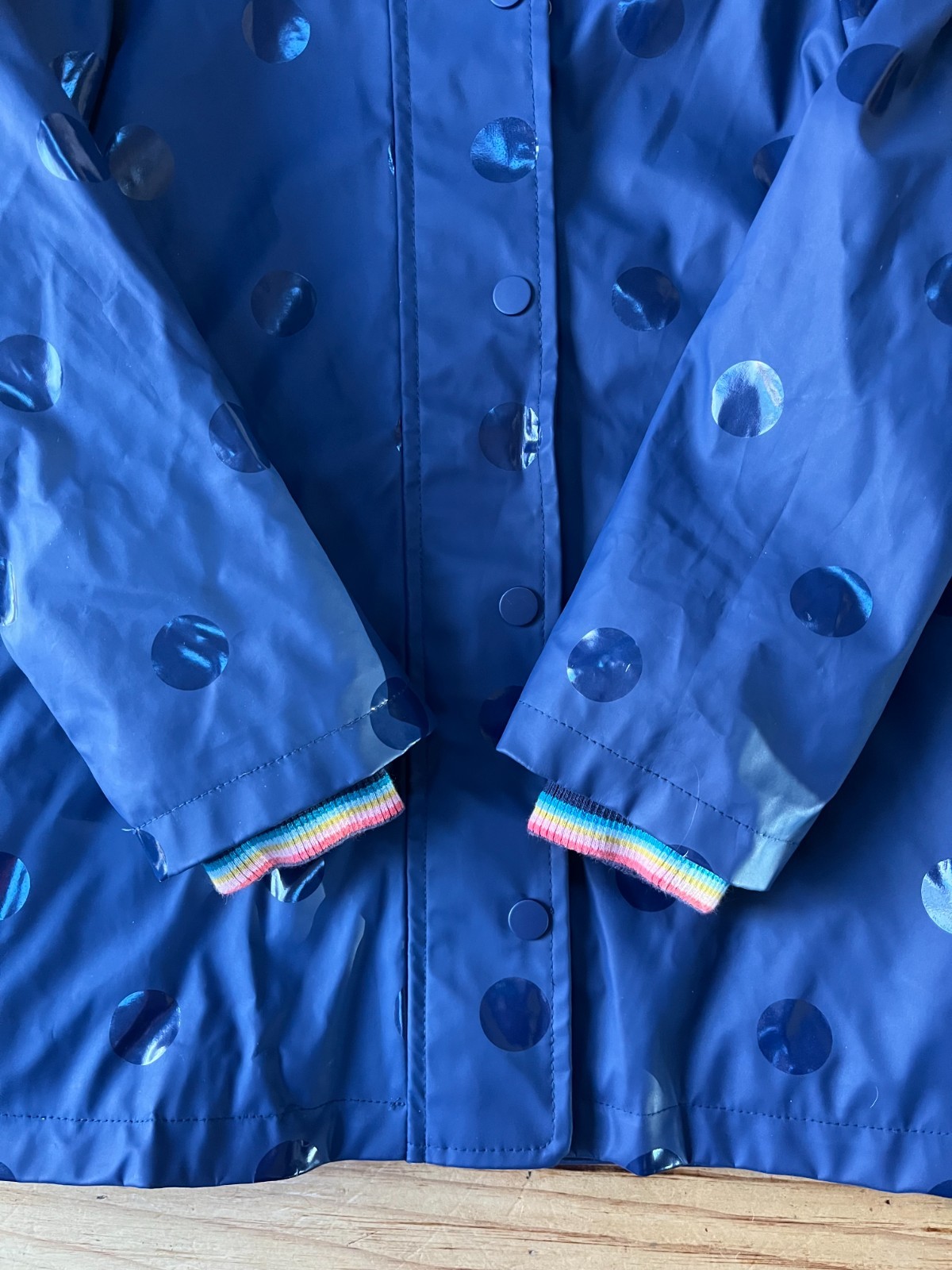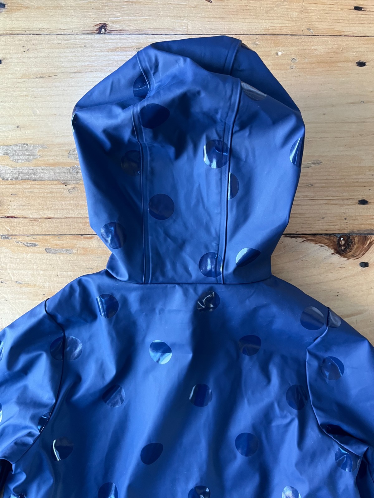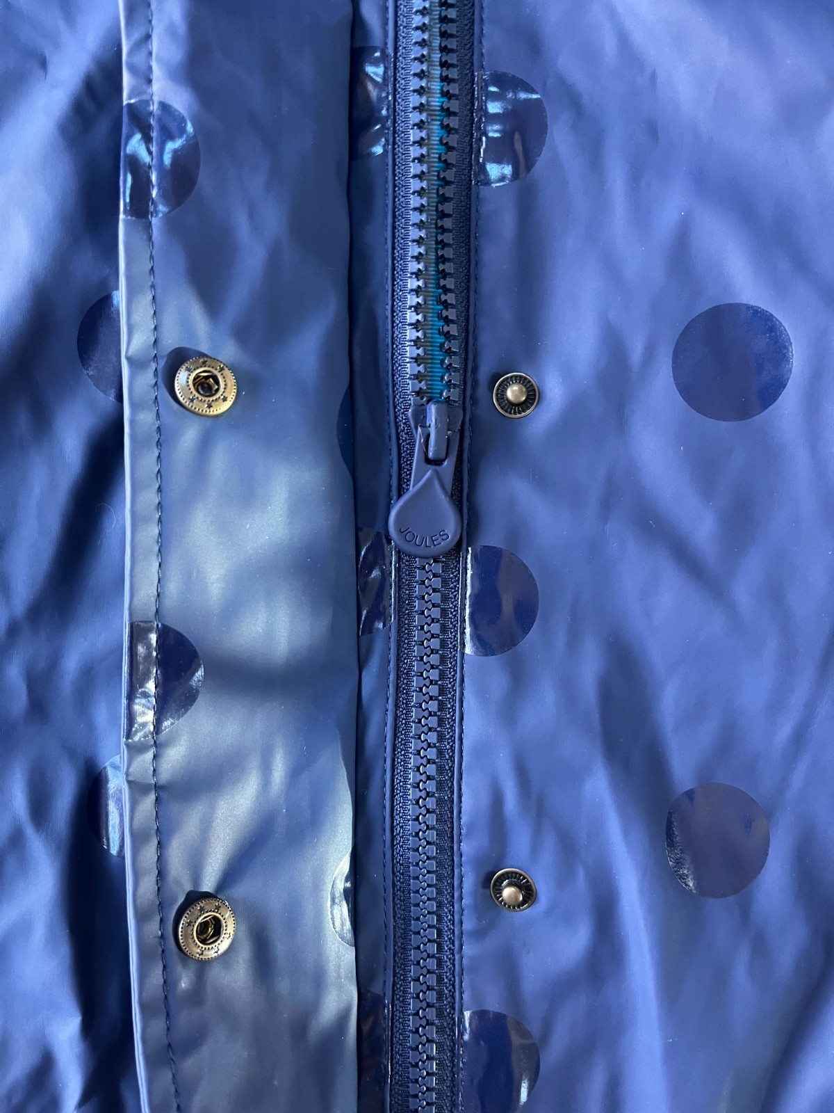 как выглядит Joules Girls Splashley Rain Coat Jacket, Navy Blue Polka Dot, Size 6 фото
