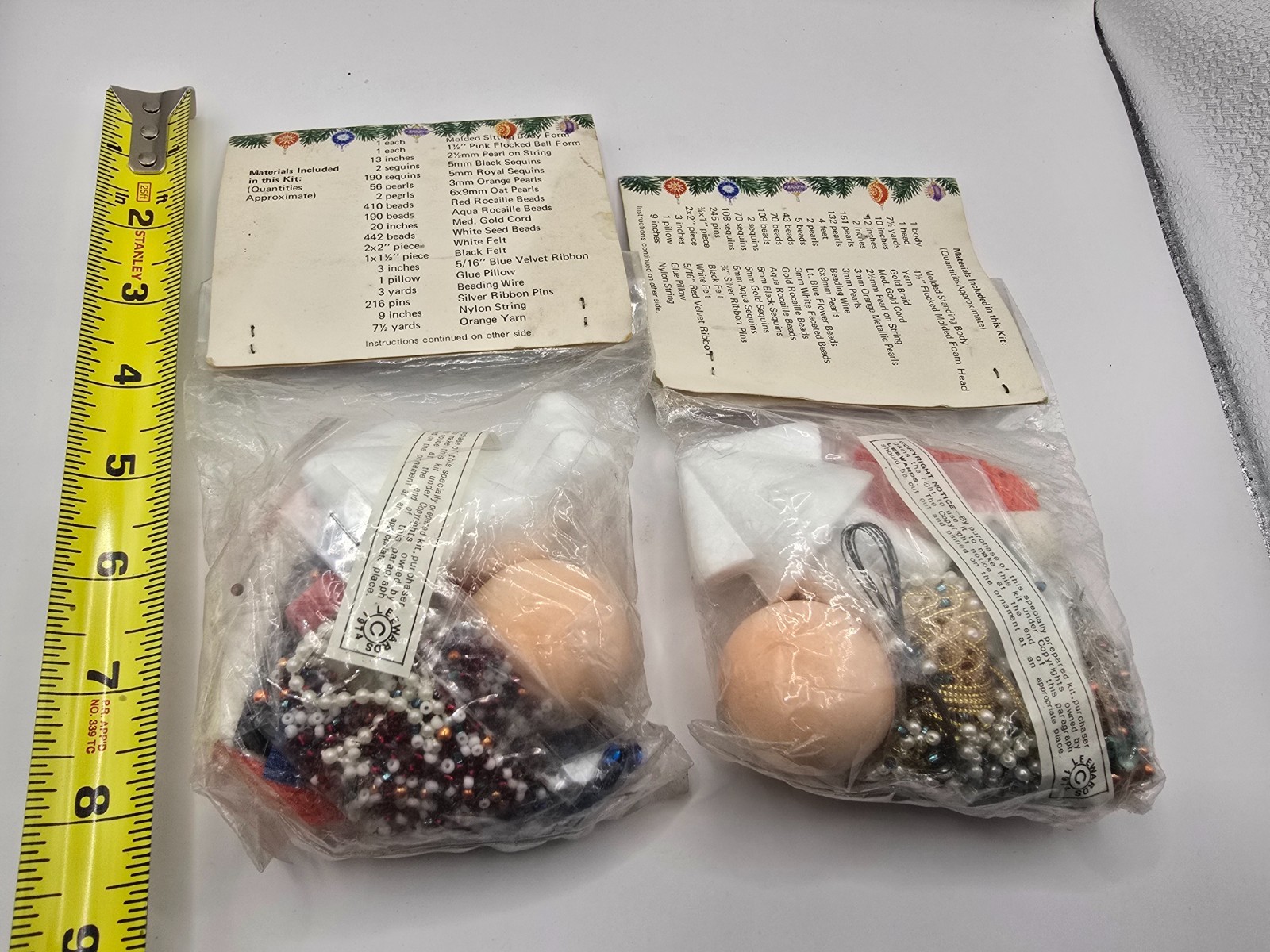 2 KITS LeeWards Raggedy ANN ANDY Vtg Sequin Bead Christmas Ornament Kit NOS