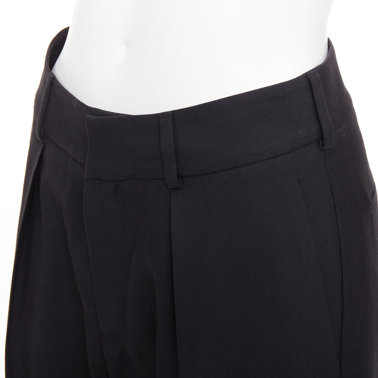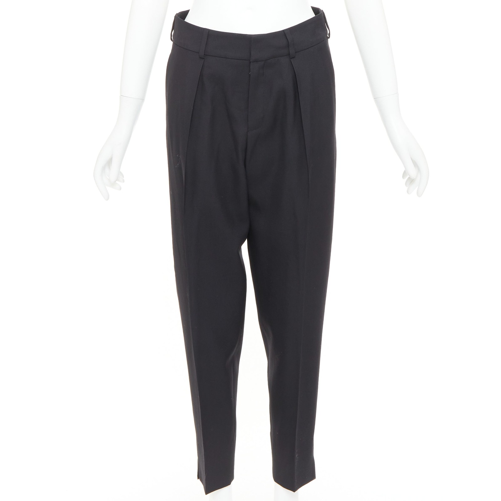 SAINT LAURENT 2017 black wool pleat front tapered silk lined trousers FR36 S