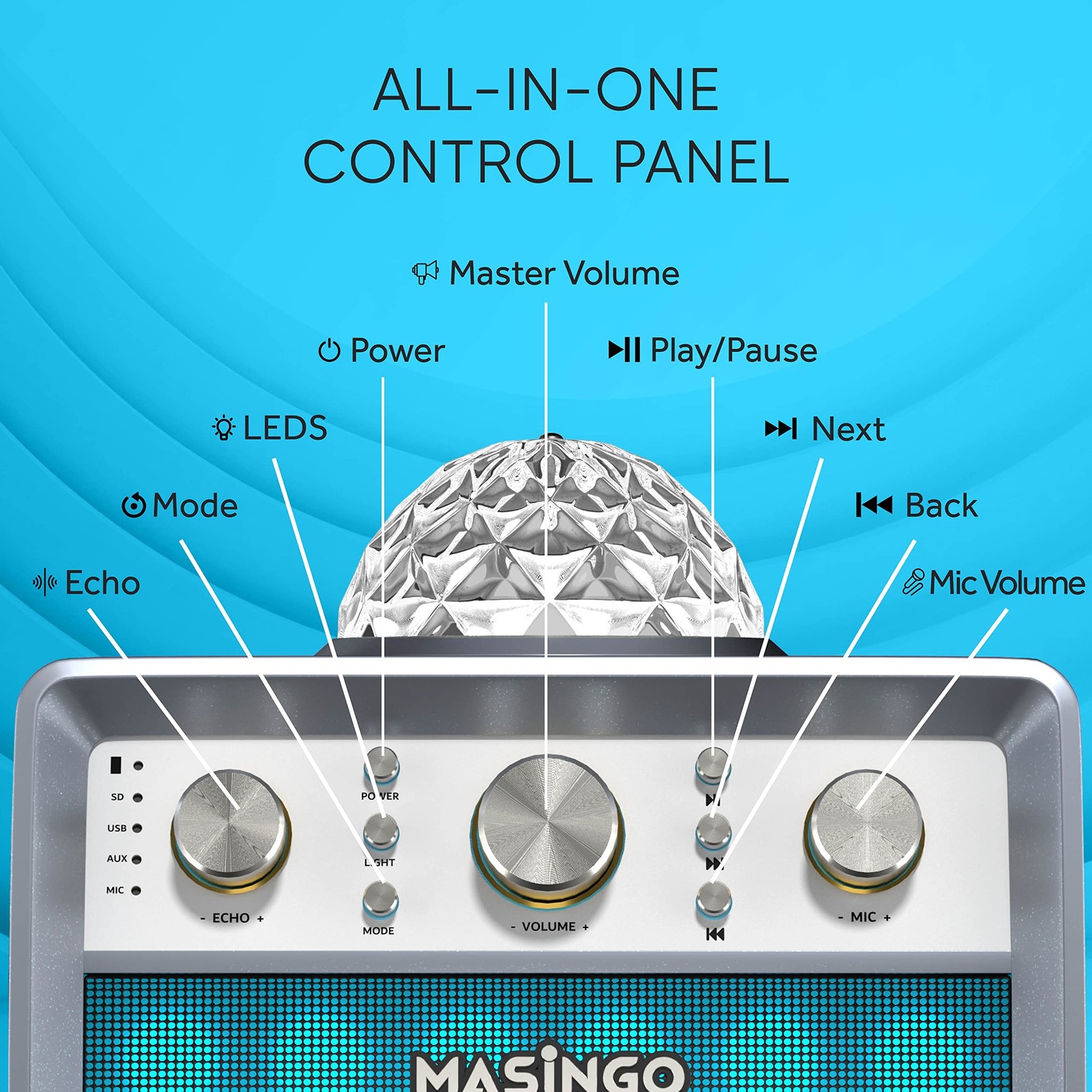 как выглядит MASINGO Karaoke Machine for Adults and Kids with 2 Wireless Microphones, Port... фото