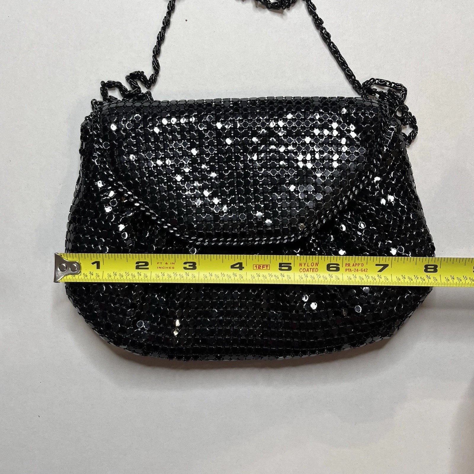 Black Metal Mesh Crossbody Purse Evening Bag Chain Strap Vintage Style