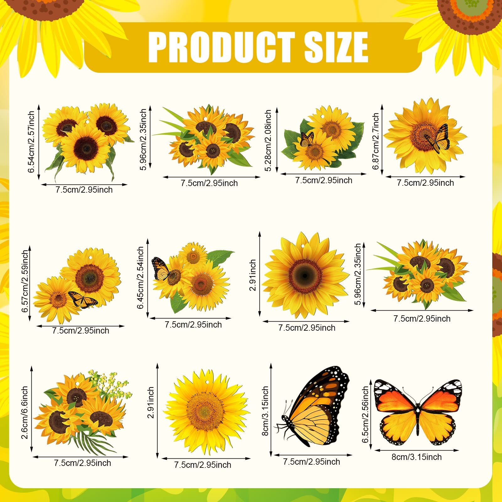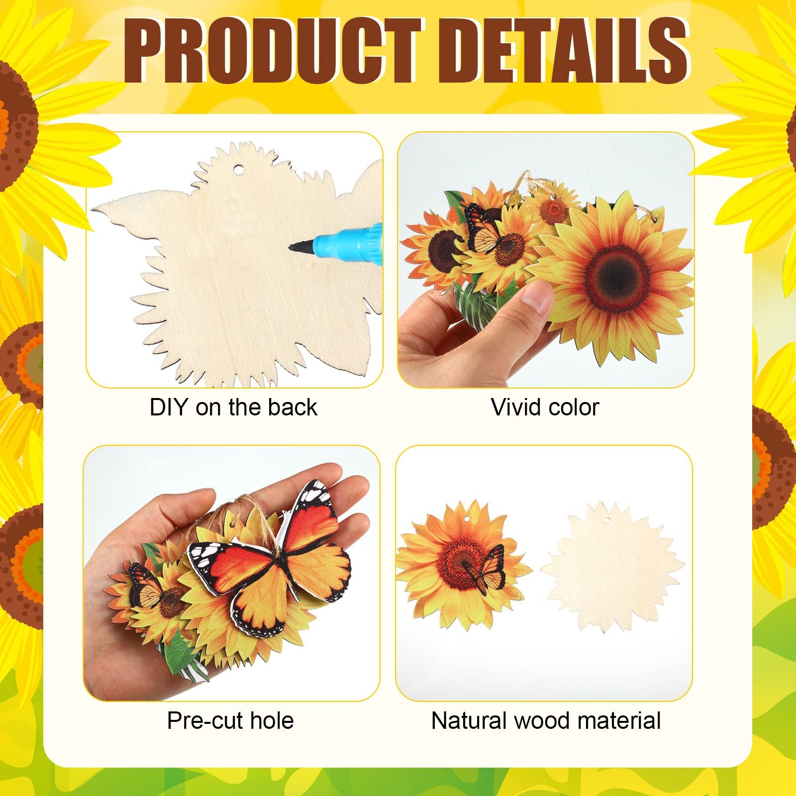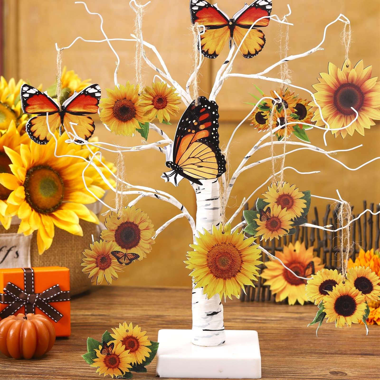 Qunclay 36 Pcs Sunflower Tree Decorations Summer Wooden Ornaments Spring Yell...