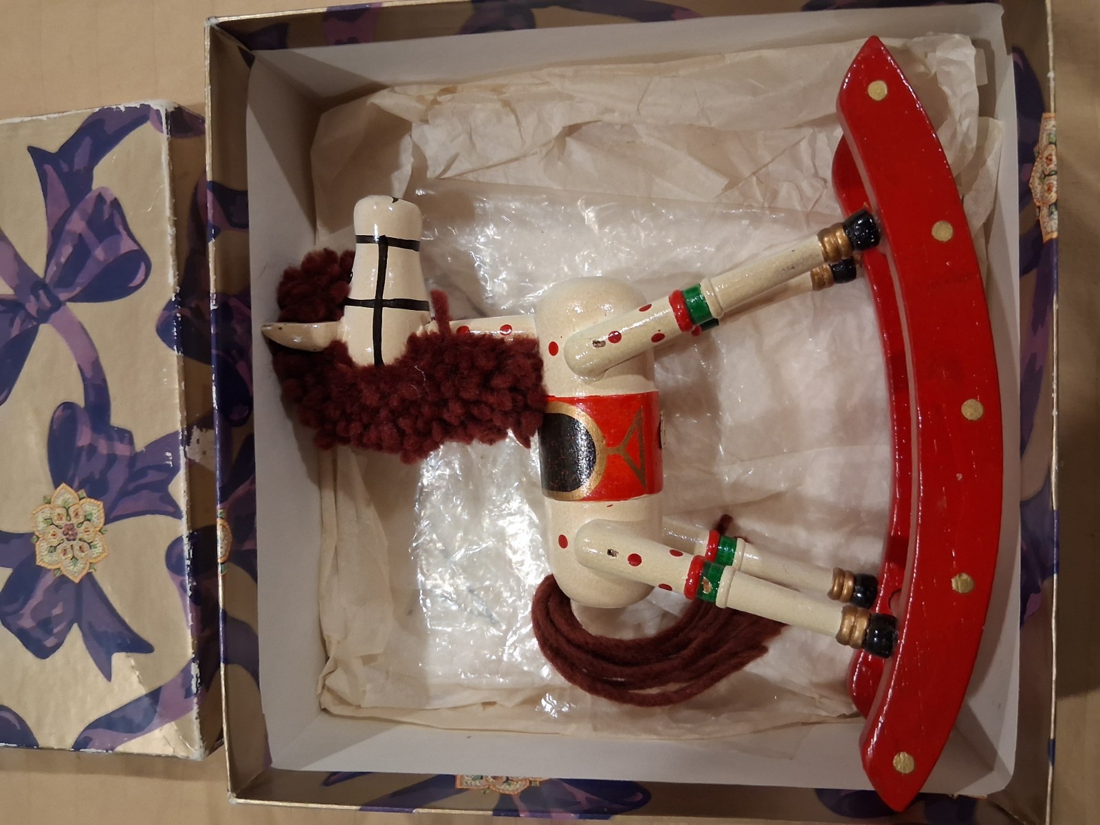 как выглядит Vintage Rare Collectible Wood Rocking Horse Christmas Ornament Hand Painted Red фото