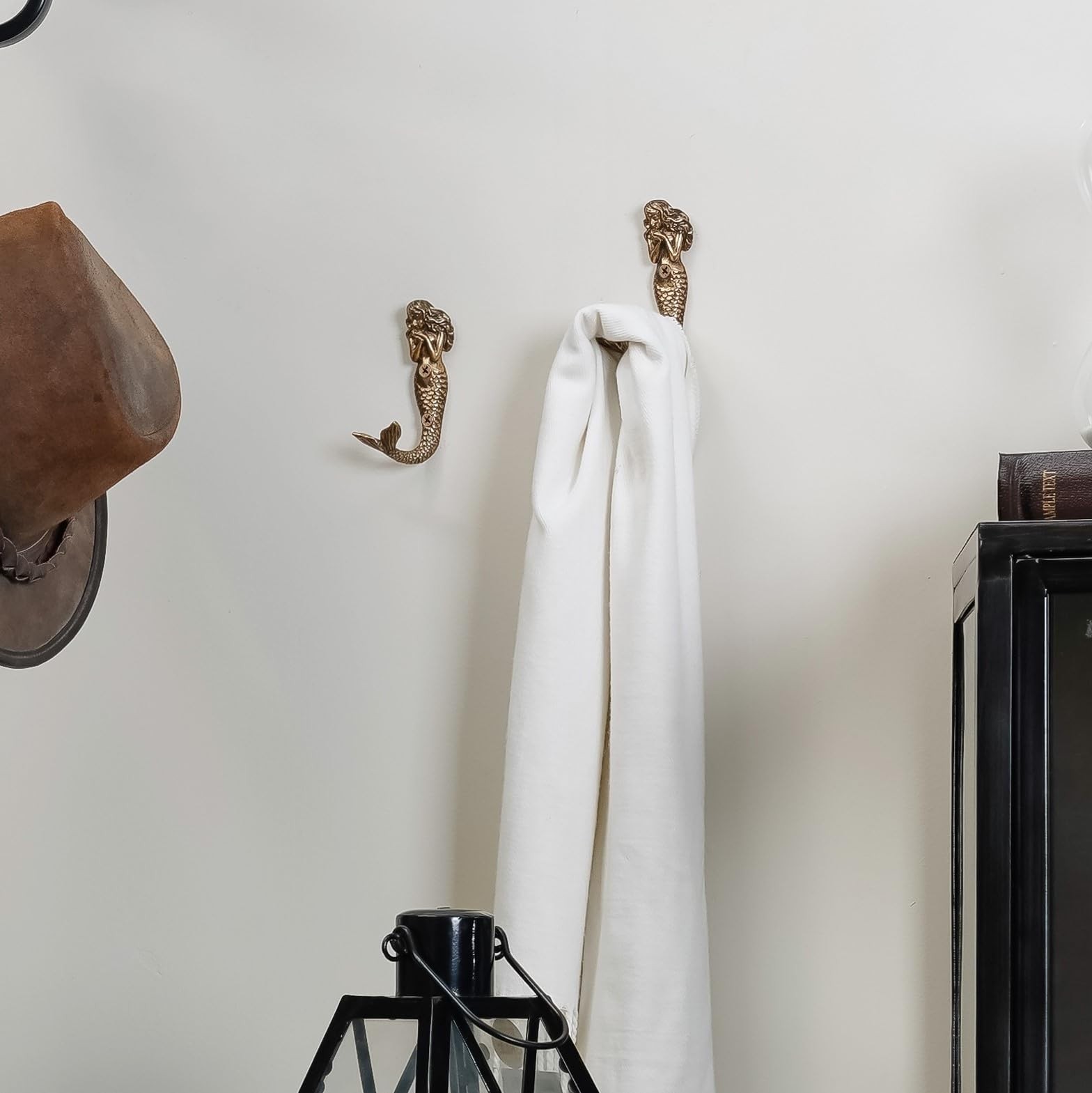 2pcs Gold Mermaid Shape Metal Wall Coat Hooks, Beach Decoration Wall Mounted ...