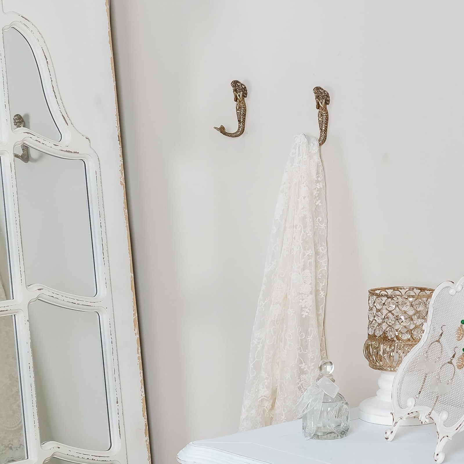 как выглядит 2pcs Gold Mermaid Shape Metal Wall Coat Hooks, Beach Decoration Wall Mounted ... фото