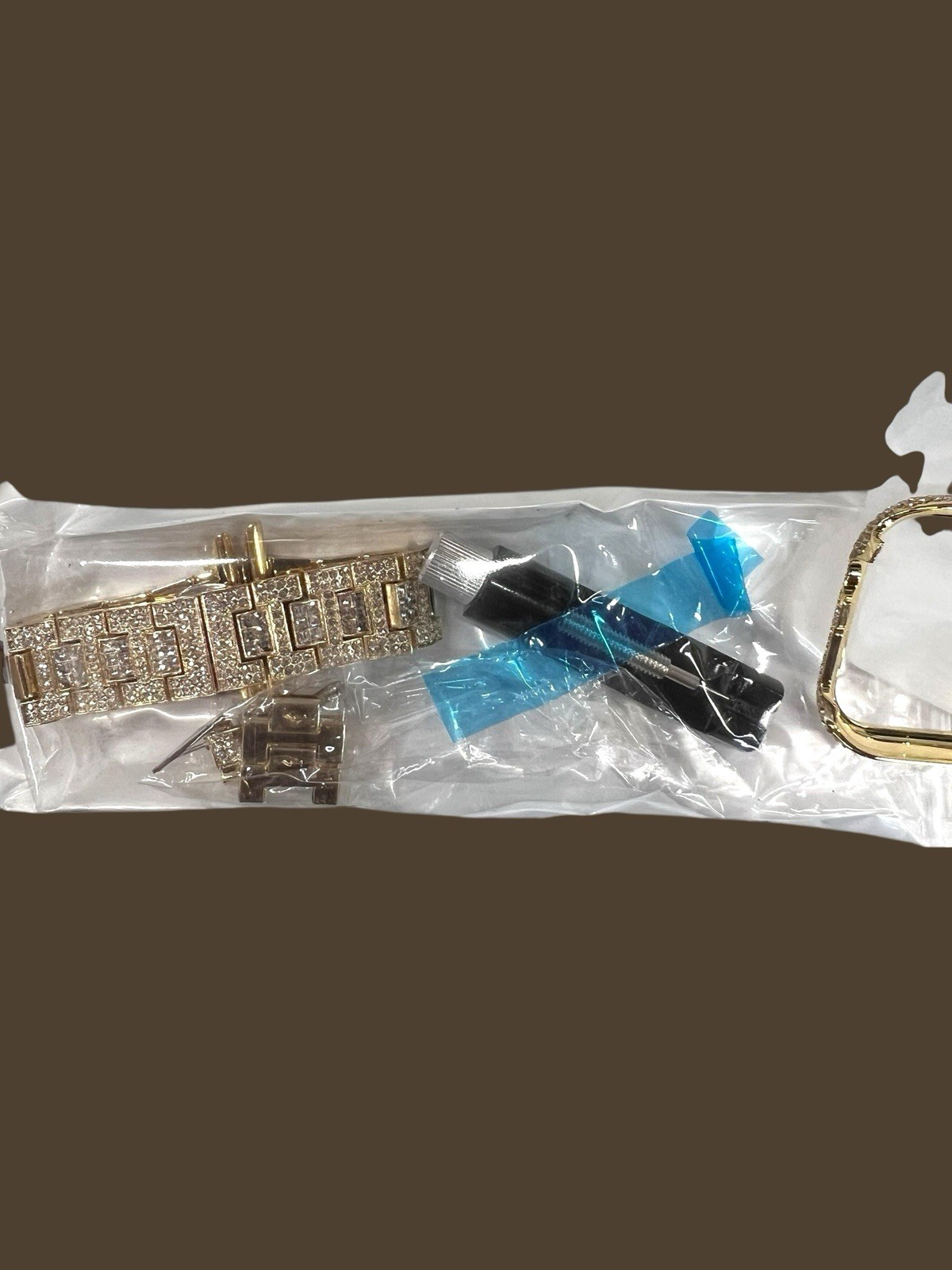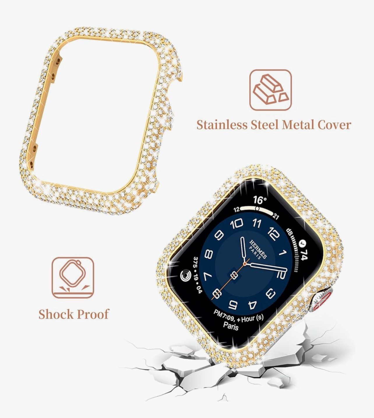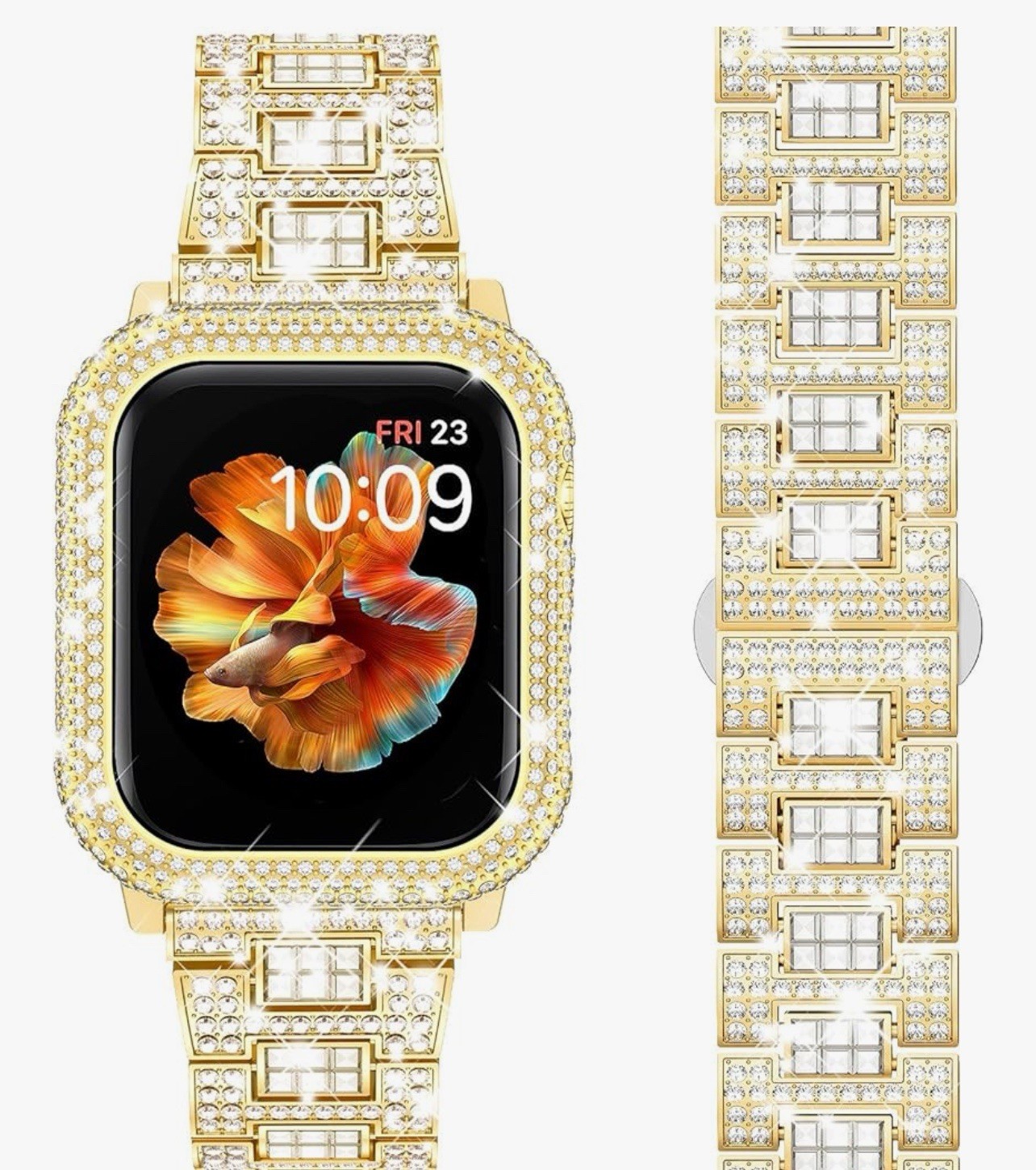 как выглядит Watch Band Compatible with Apple Bling Women Gold Rhinestones Case Adjustable фото