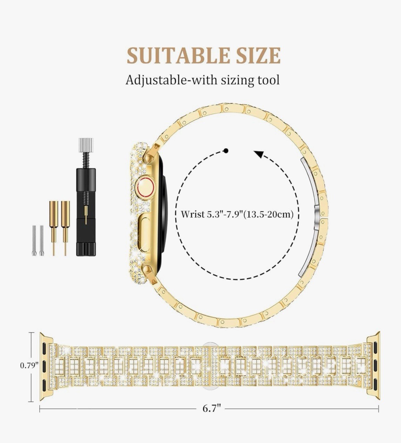 Watch Band Compatible with Apple Bling Women Gold Rhinestones Case Adjustable