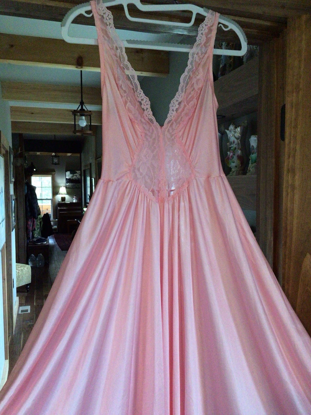 как выглядит Vintage Olga Full Sweep Pink Nightgown Style 9227 Lace Detail Size M фото