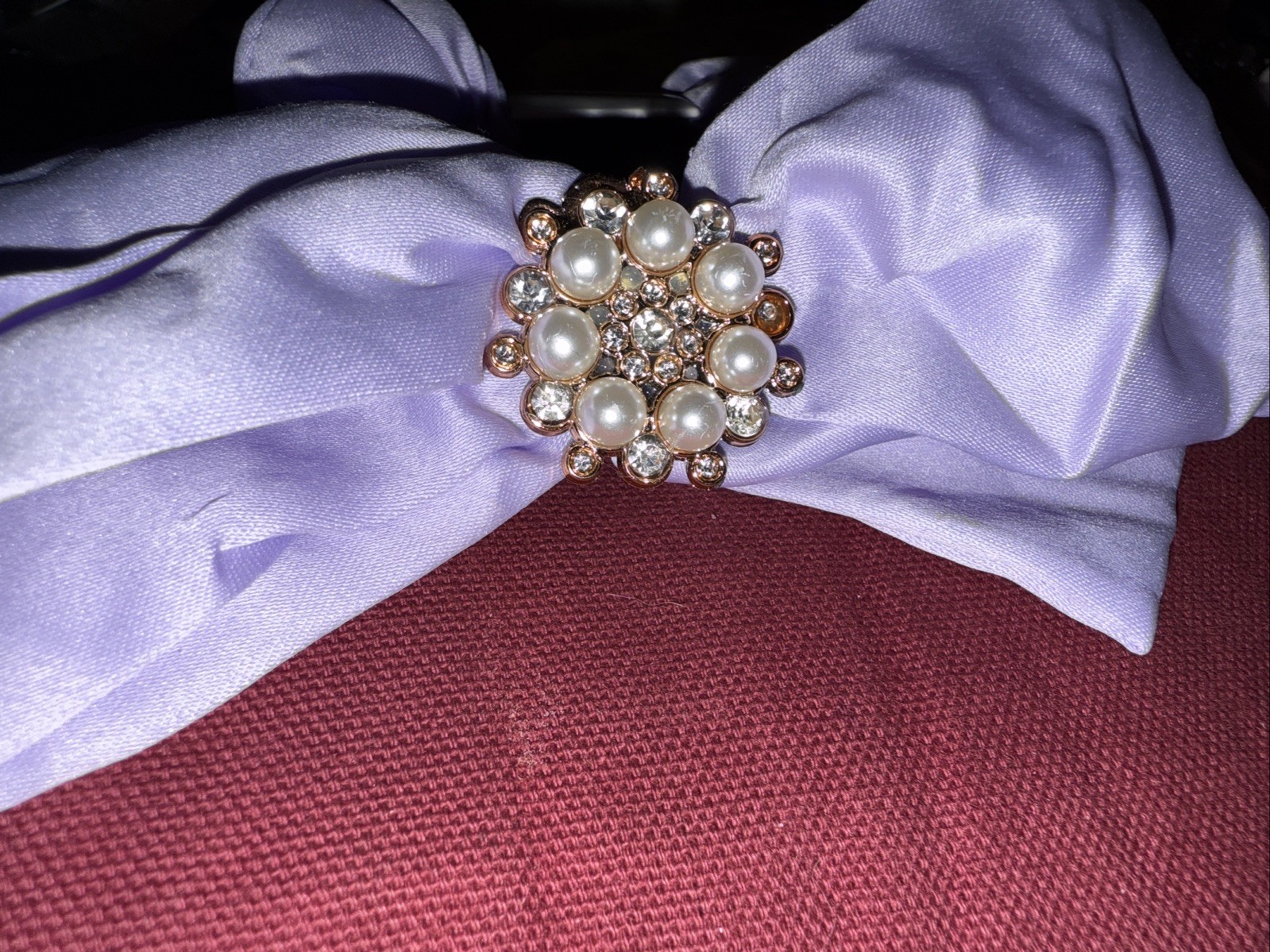 как выглядит Lilac Hair Bow With Center Pearls Gold Tone NWT фото