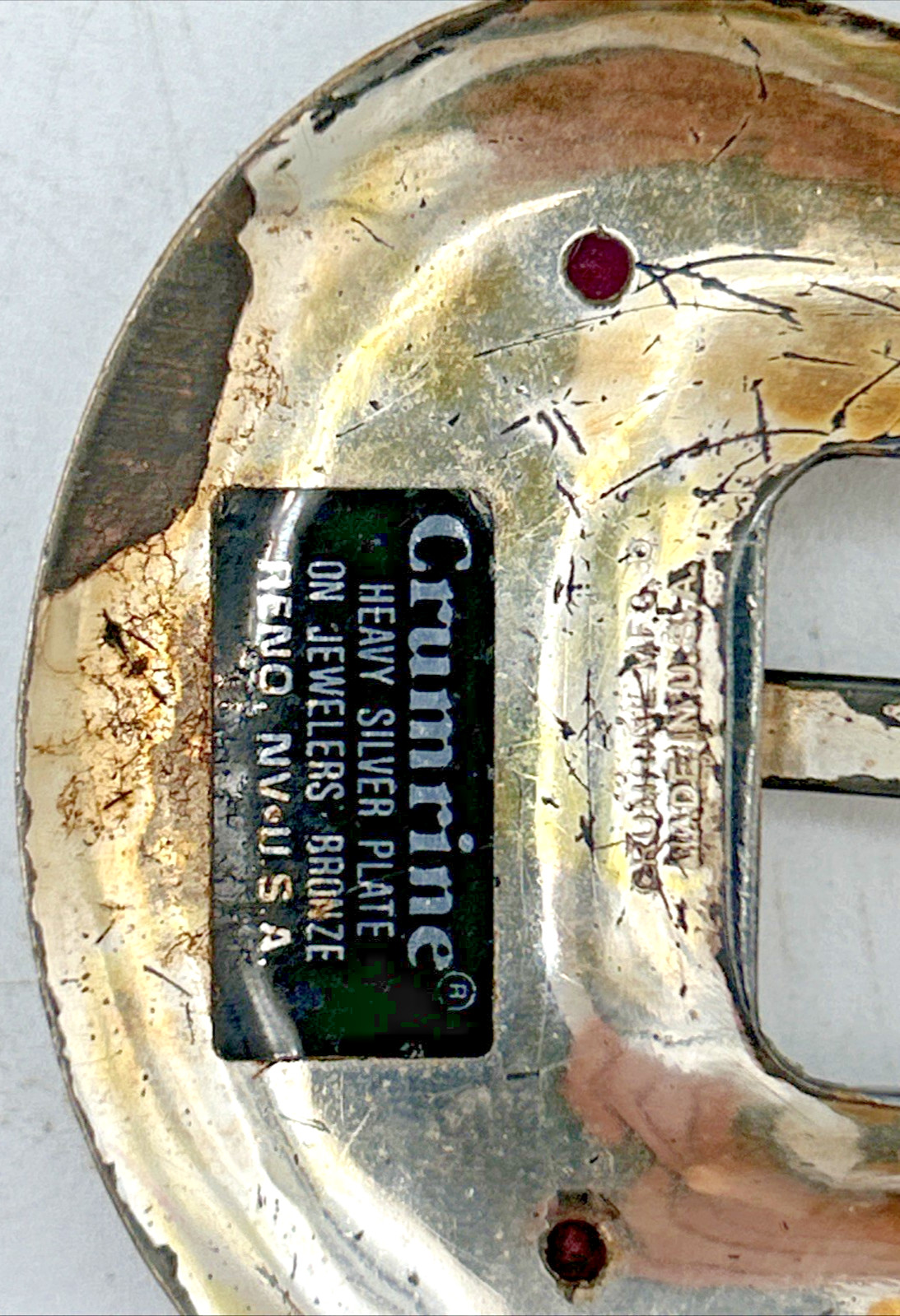 Vintage Crumrine Western Belt Buckle Heavy Silver Plate On Jewelers Bronze 2pc