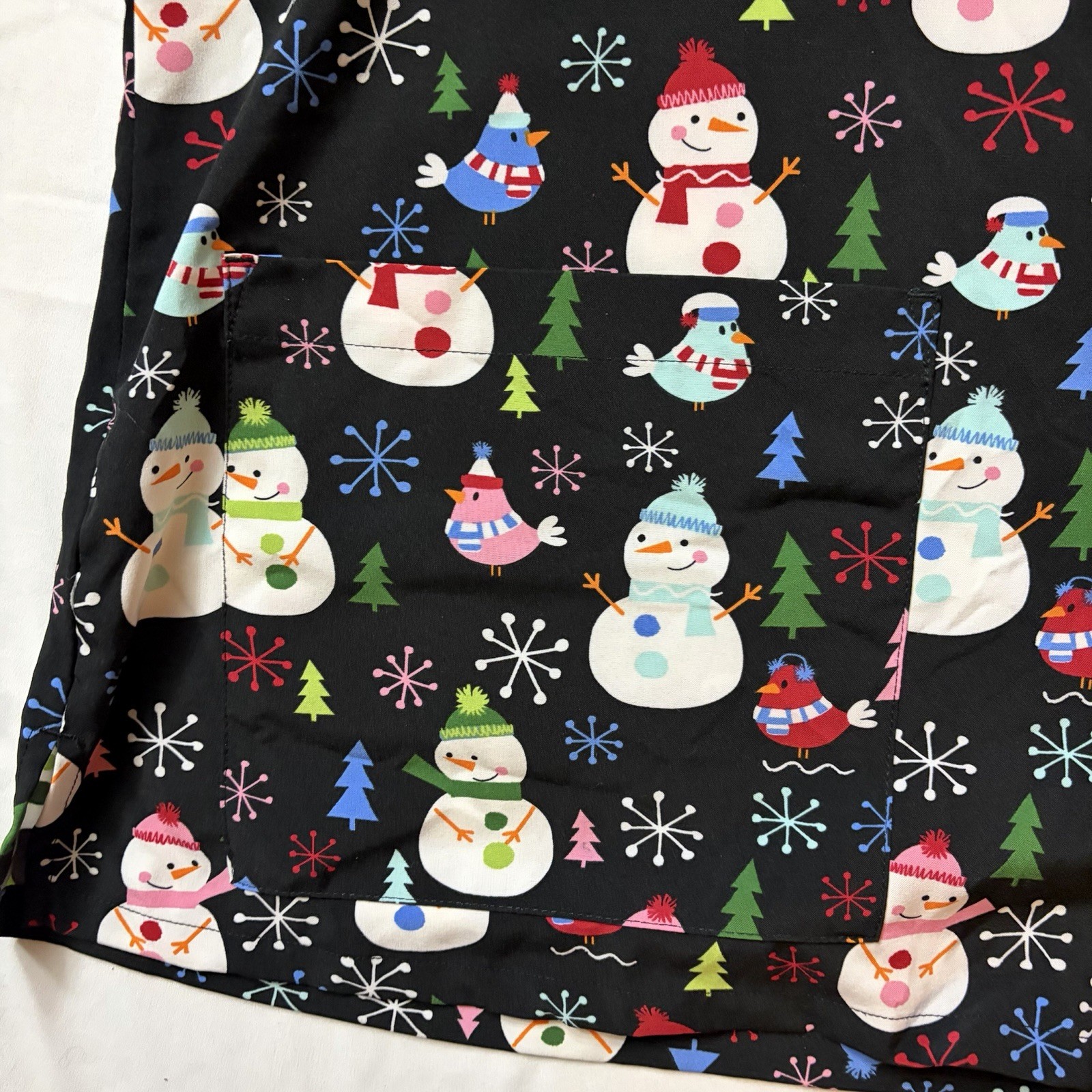 Medcouture Women s Scrub Top Black With Snowmen 2x