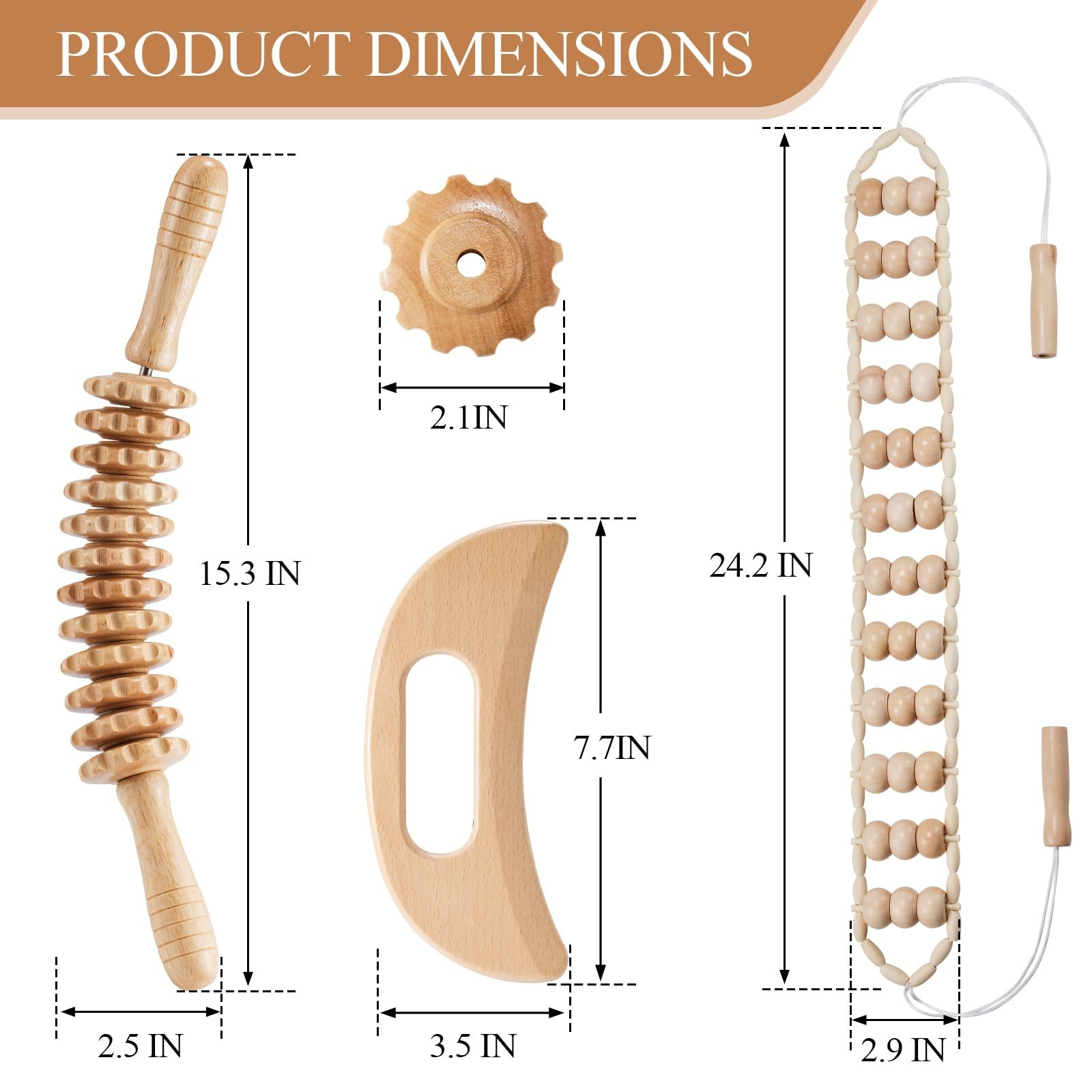 3- Piece Wooden Therapy Massage Tools Lymphatic Drainage Body Sculpting Kit