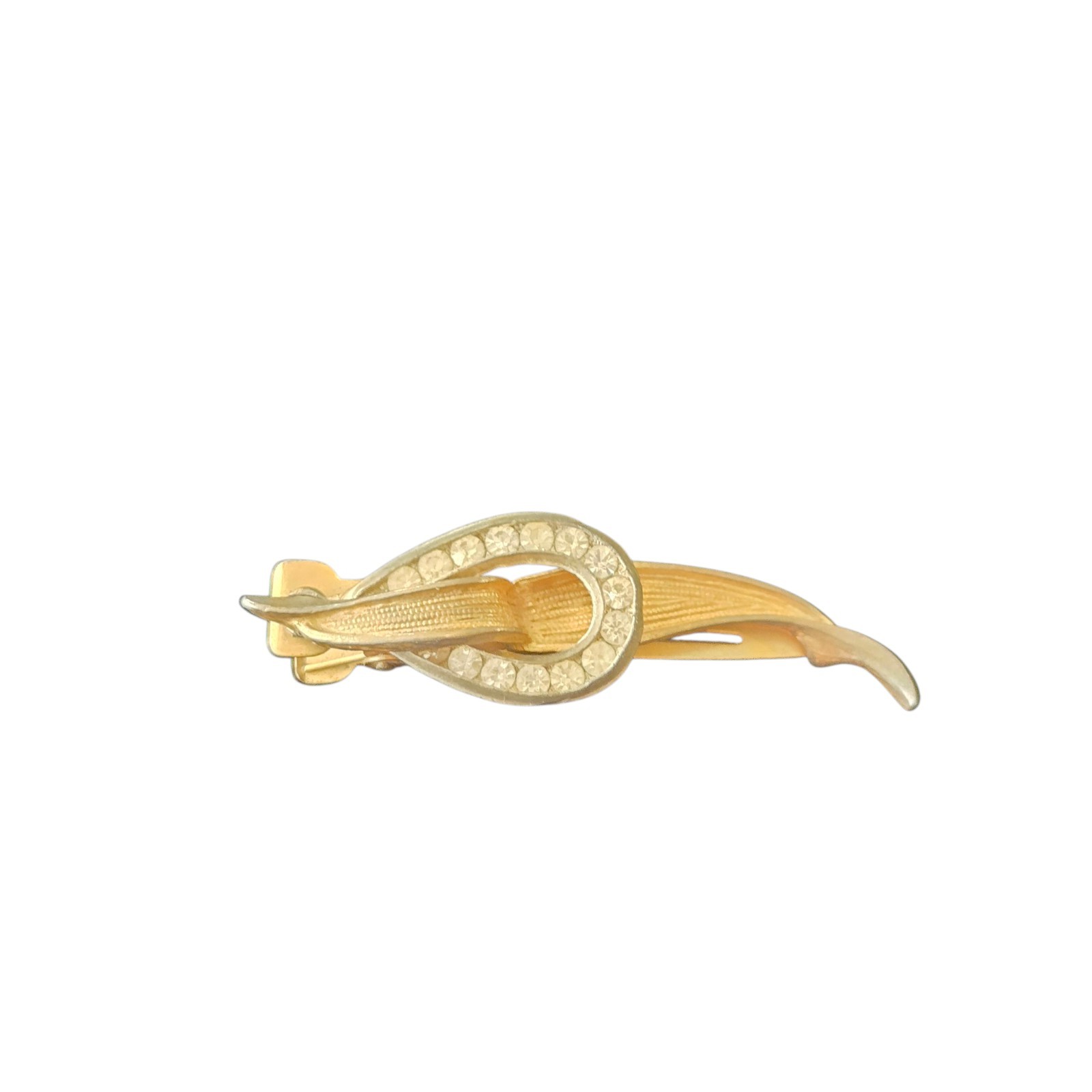VTG MCM Unmarked Clear Rhinestone Accented Brass Alligator Clip Barrette 2X3/4