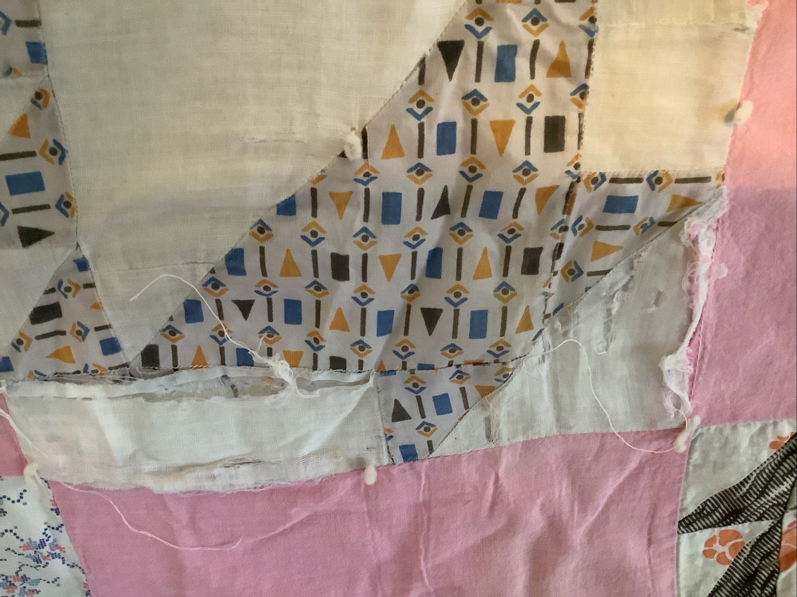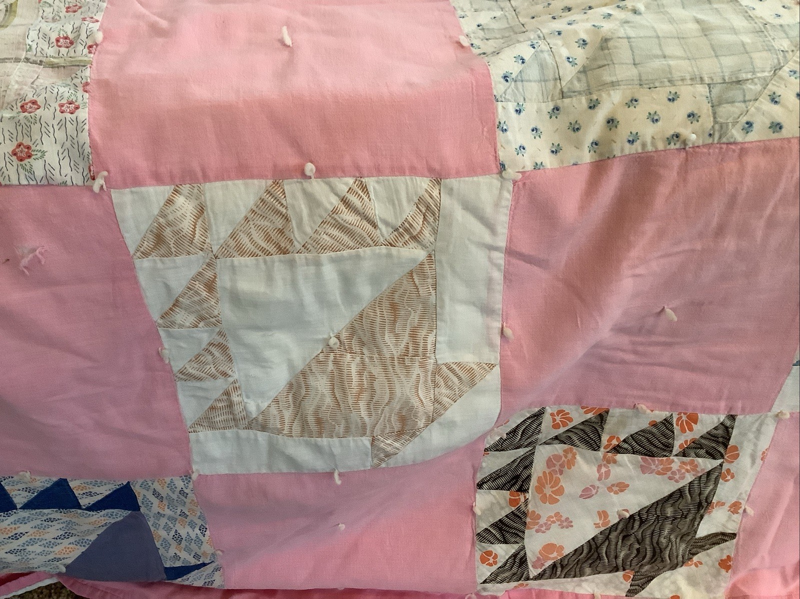 • Vintage 1930 s Tied May Basket Quilt-Blue Baskets and Pink Accent