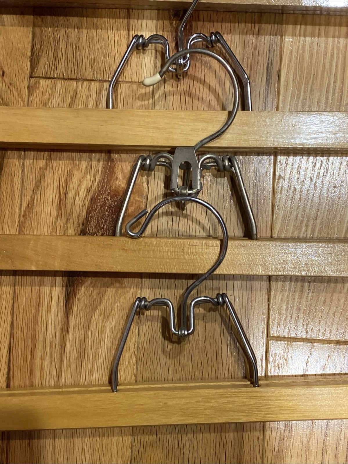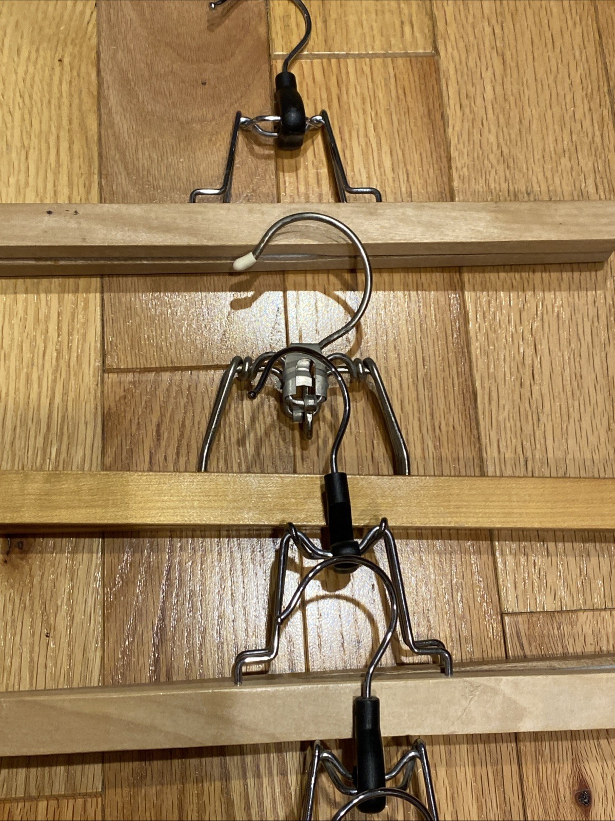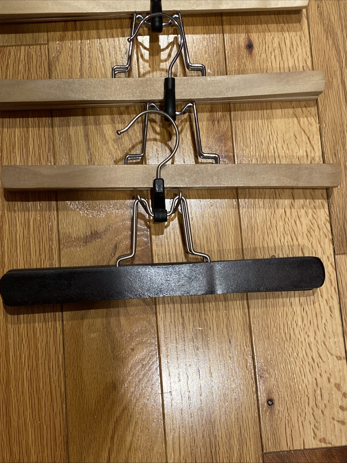 как выглядит Lot of 12 Vtg Wooden Clamp Hangers Pant / Skirt Hangers 11" to 11.75" EUC фото