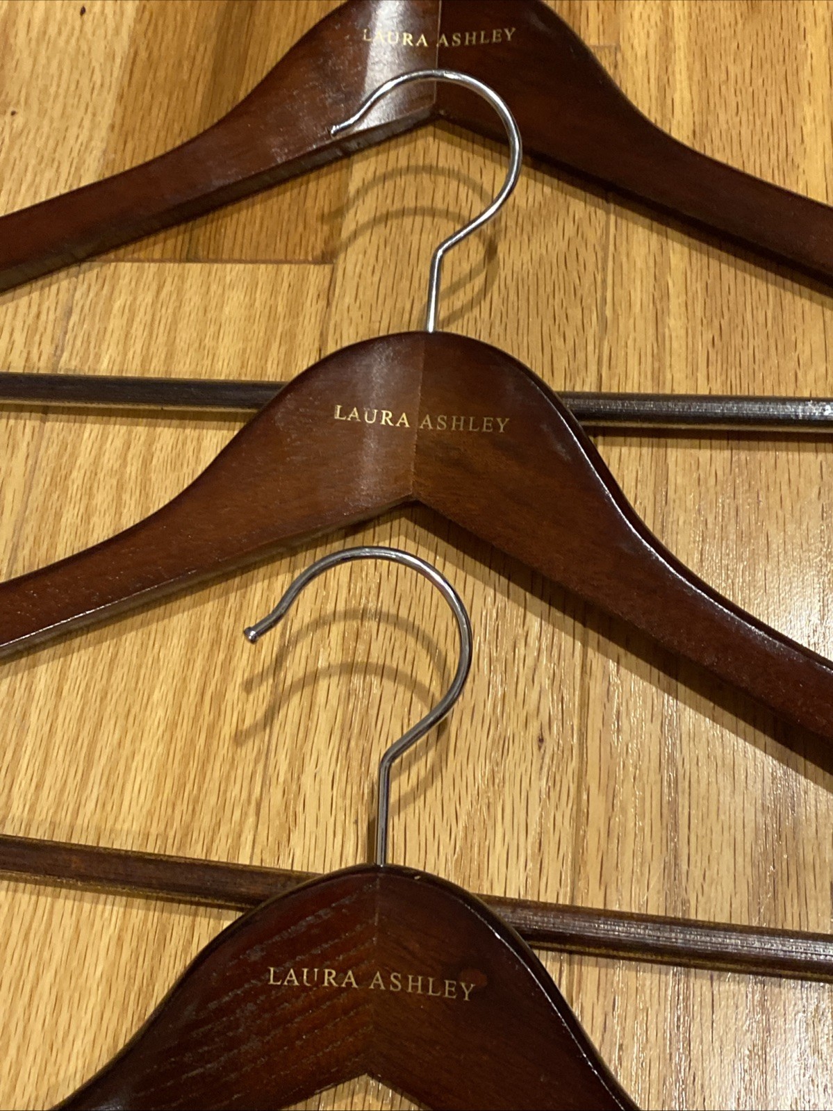 как выглядит Lot of 7 Vtg LAURA ASHLEY Dark Wood Brown Wooden Clothing Hangers EUC фото