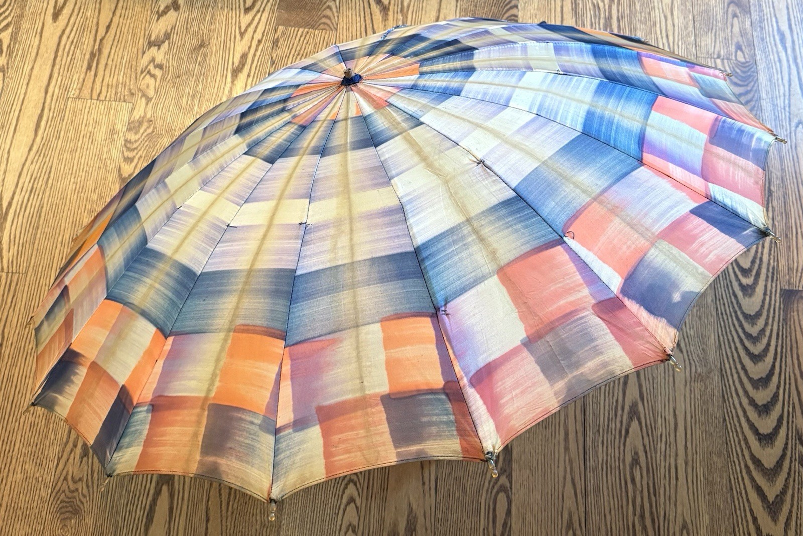 Fab 30s Vintage Plaid Umbrella Chunky Carved Lucite Scottie Terrier Dog Handle