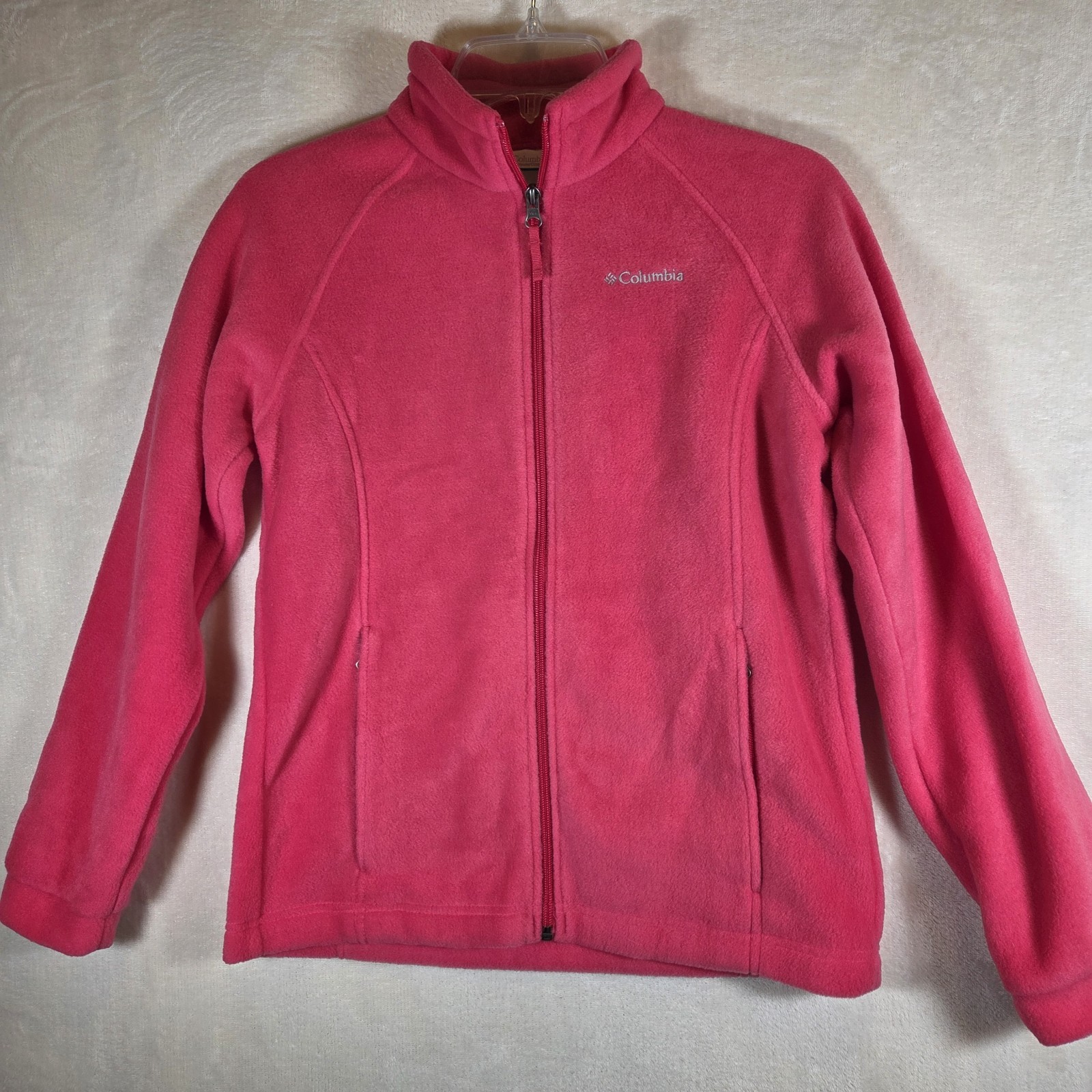 Columbia Girl s Bright Pink Fleece Zip Jacket Sz L 14/16 - Great Condition