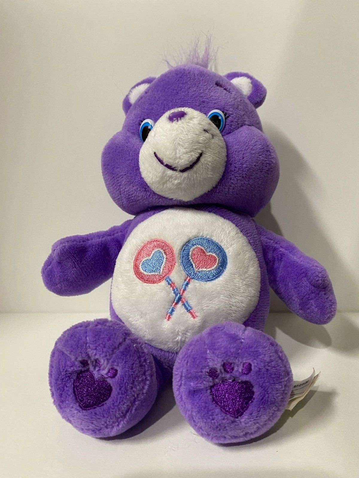 Care Bear Share Bear Plush Purple Embroidered Tummy Stuffed Animal Blue Eyes Toy