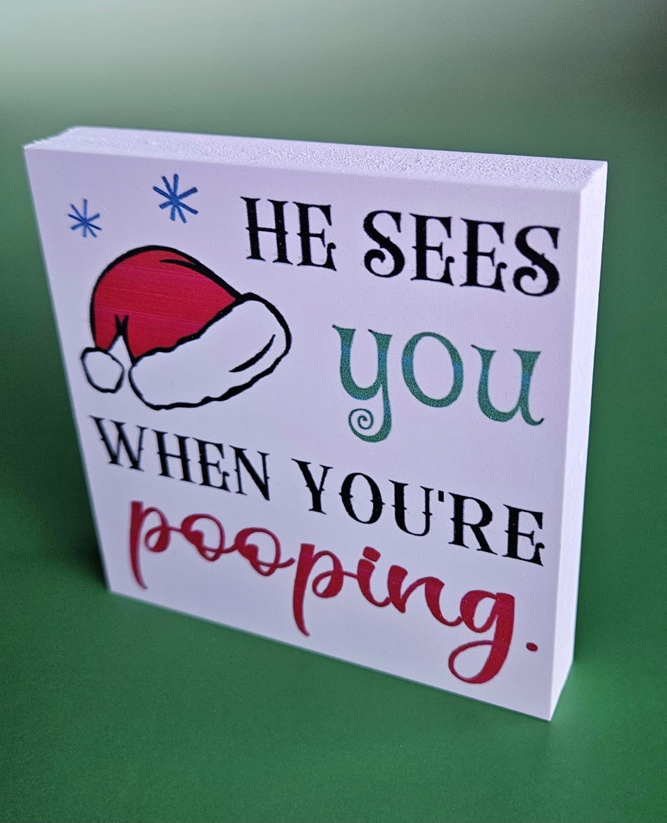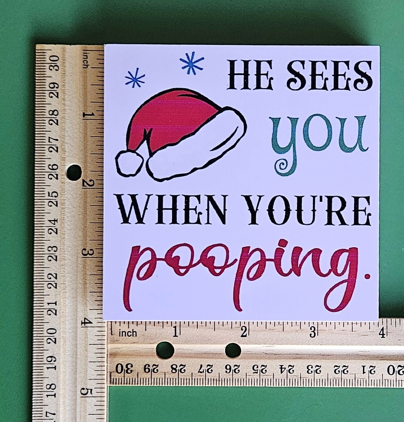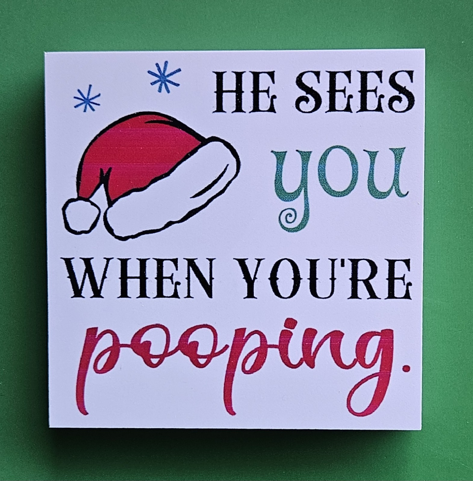 He Sees You When You're Pooping Funny Bathroom Sign - Santa Christmas Home Decor