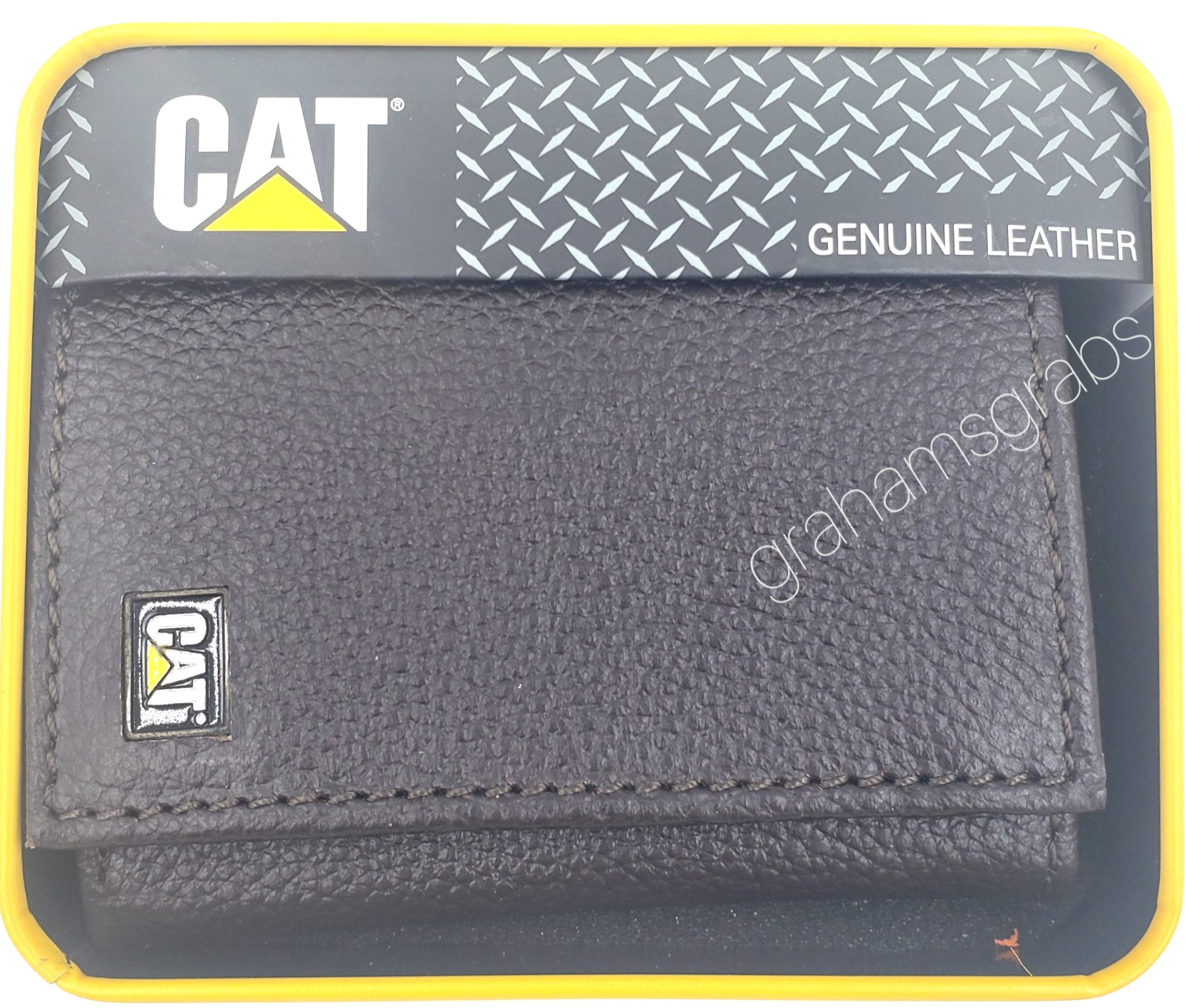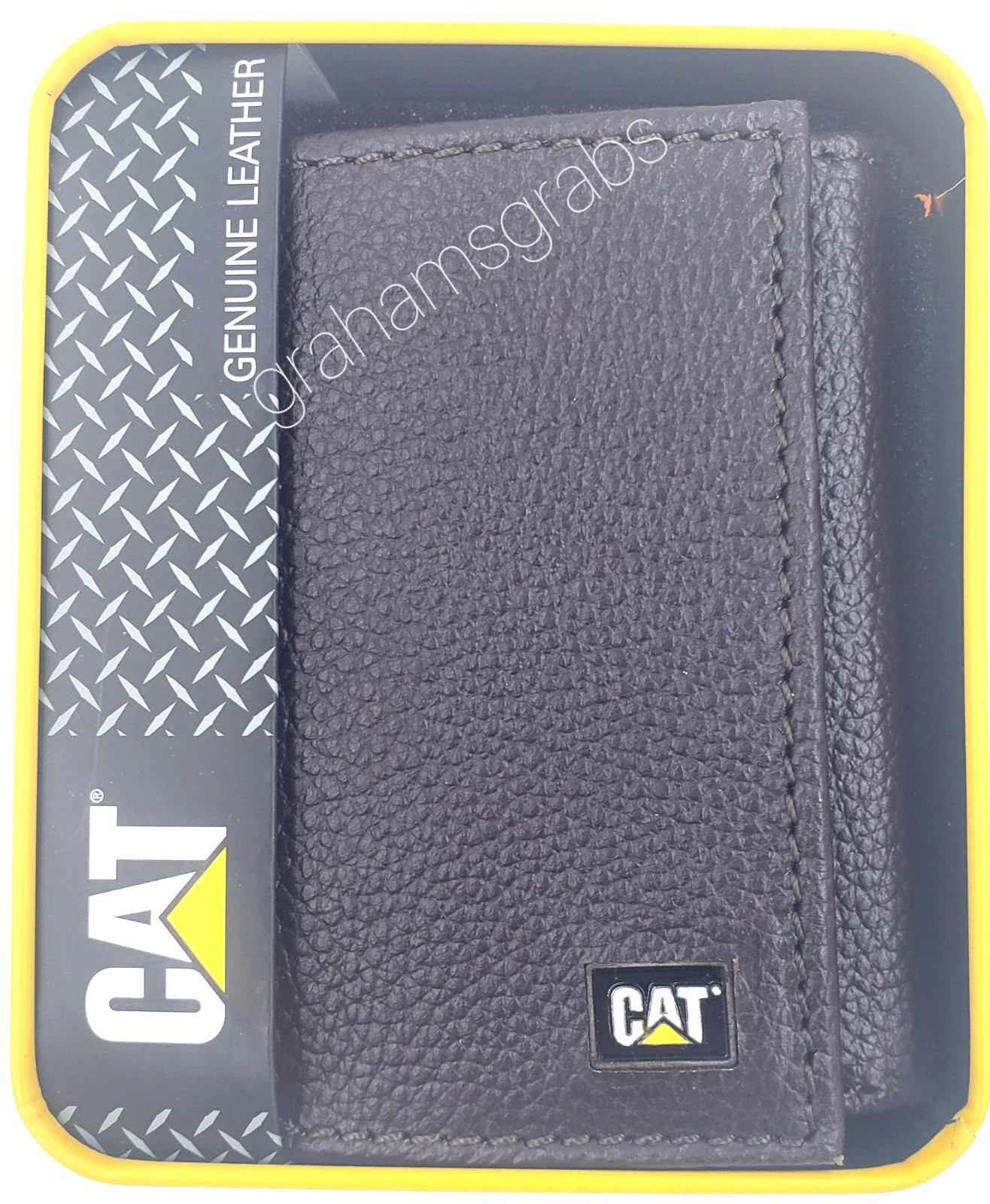 как выглядит CAT Caterpillar Mens GENUINE LEATHER RFID TRIFOLD WALLET CHOCOLATE in GIFT TIN фото