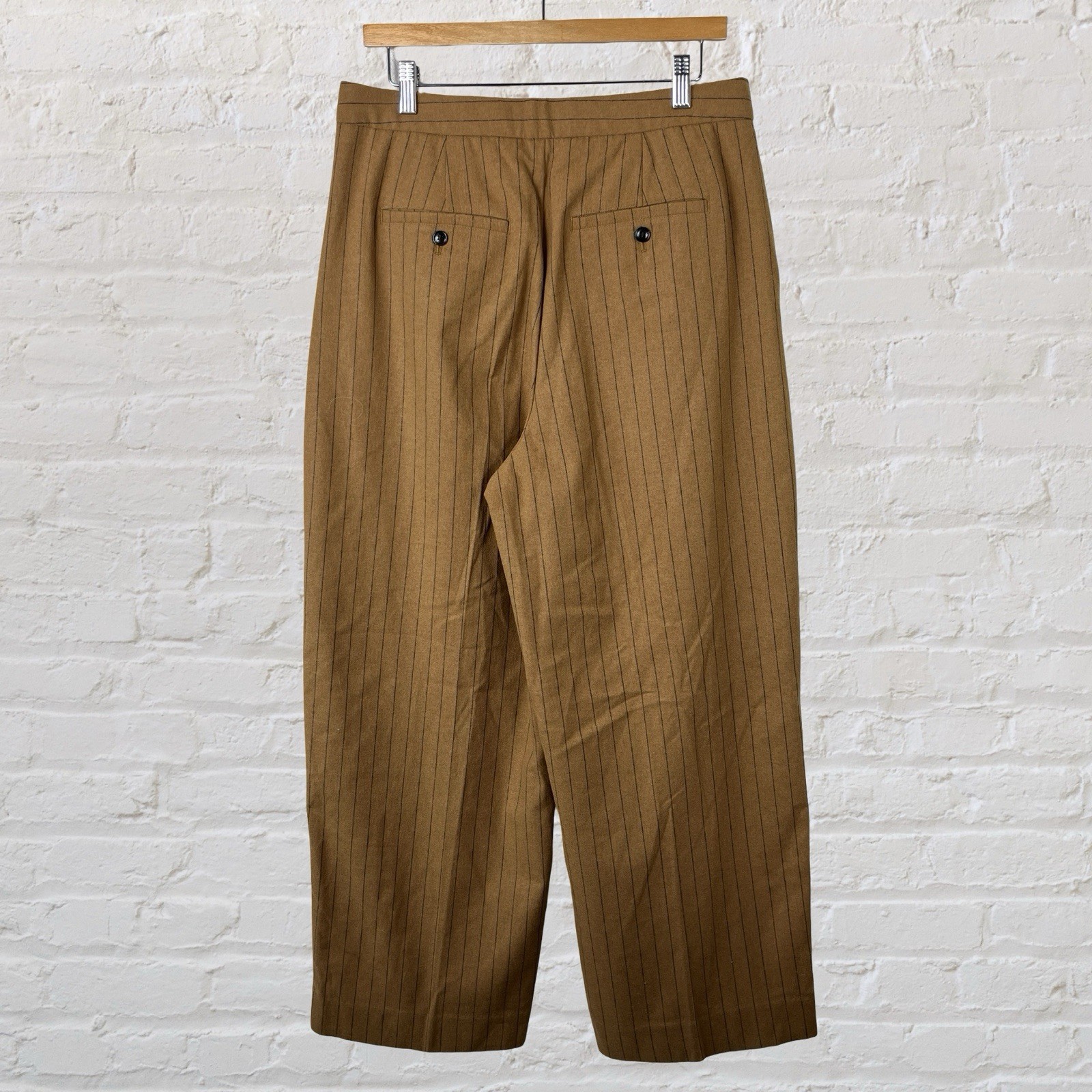 Madewell The Rosedale High Rise Straight Pant Brown Pinstripe Pleated Womens 12