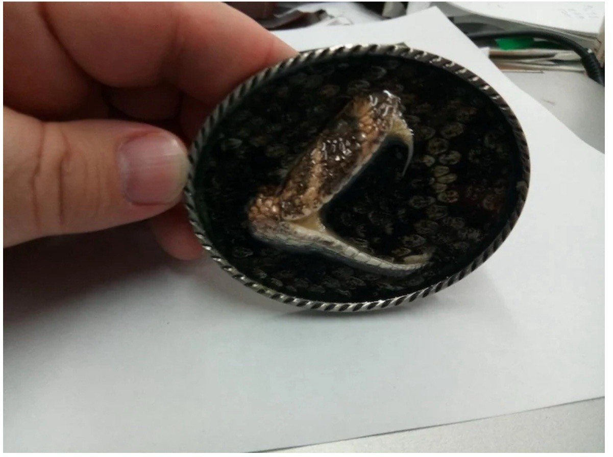 как выглядит Western Diamondback Rattlesnake Single Head Belt Buckle фото