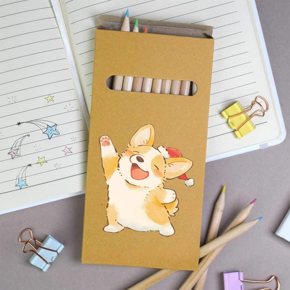 как выглядит 12 x Cute Christmas Corgi Long Colour Pencils PE00086673 фото