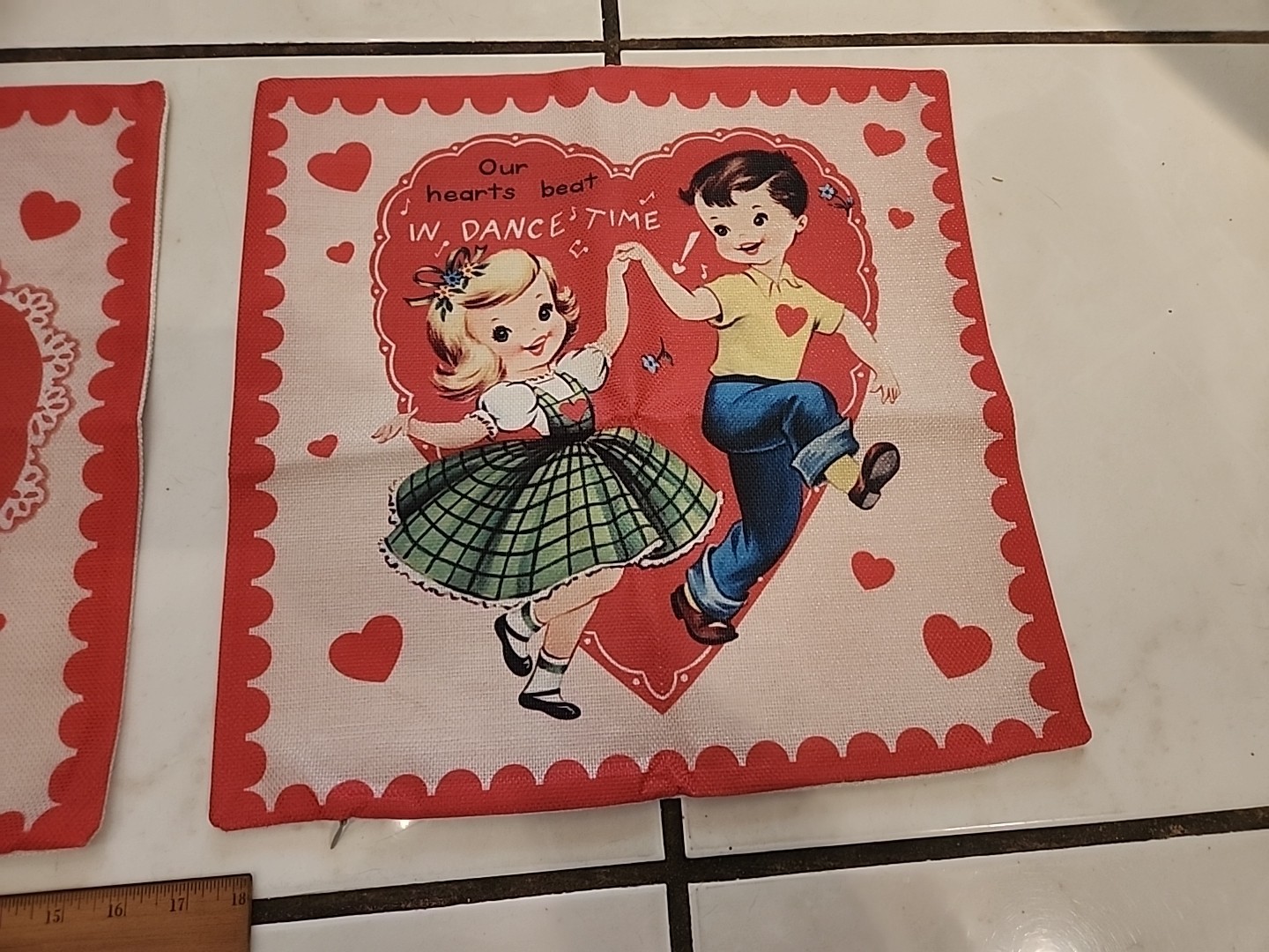 Set Of 2 Vintage-Style Retro Valentines Day Pillow Covers 15.5 15.5 LQQK LOVE