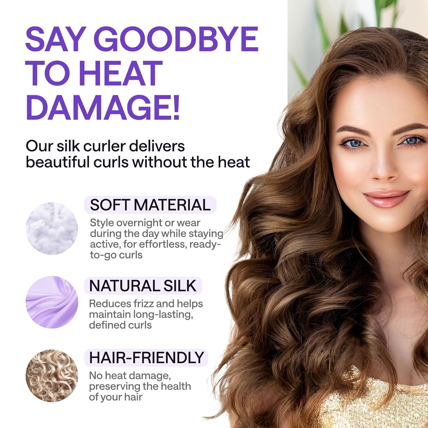 как выглядит Silk Heatless Hair Curler Set No Heat Overnight Curls Rod for Long Short Hair фото