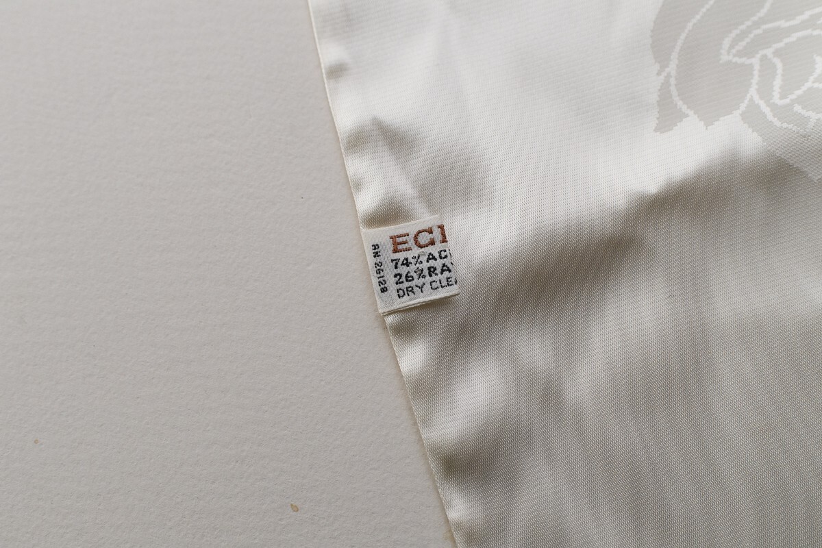 как выглядит Echo vintage White satin acetate rayon made in Japan scarf rose flaw фото