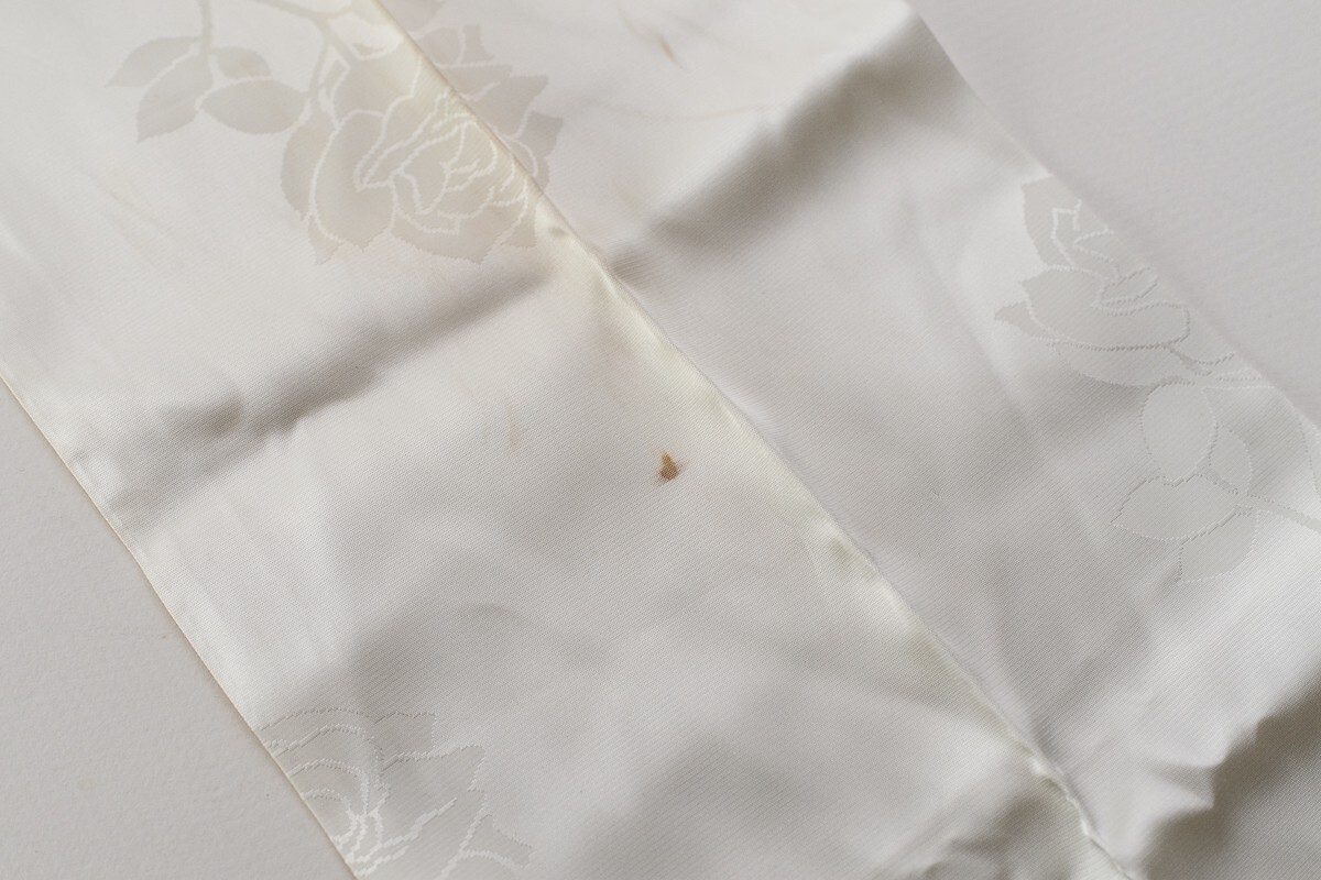 Echo vintage White satin acetate rayon made in Japan scarf rose flaw