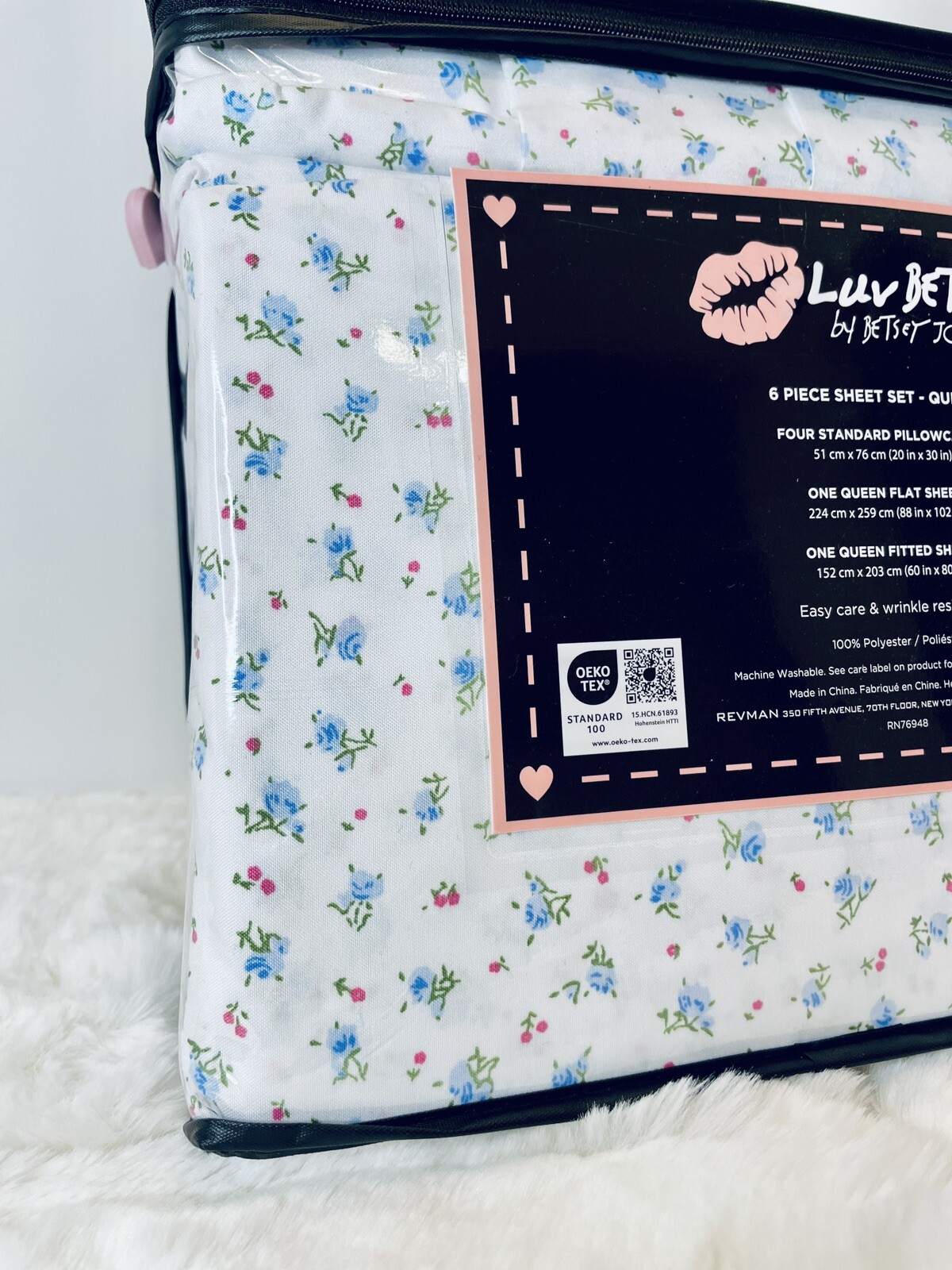 Betsey Johnson Blue Baby Buds Microfiber Floral Coquette QUEEN Sheet Set NEW