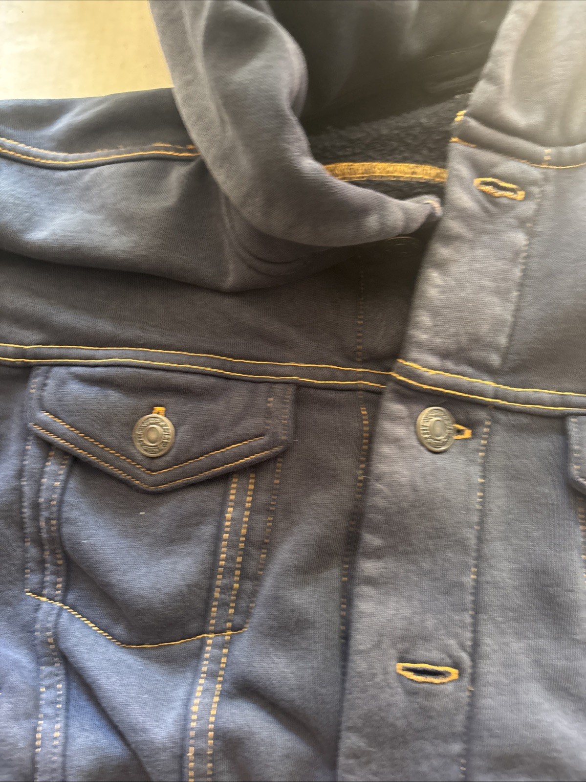 как выглядит GAP KIDS Faux Denim Jacket Hoodie Button Up Sweatshirt Size Medium 8 фото