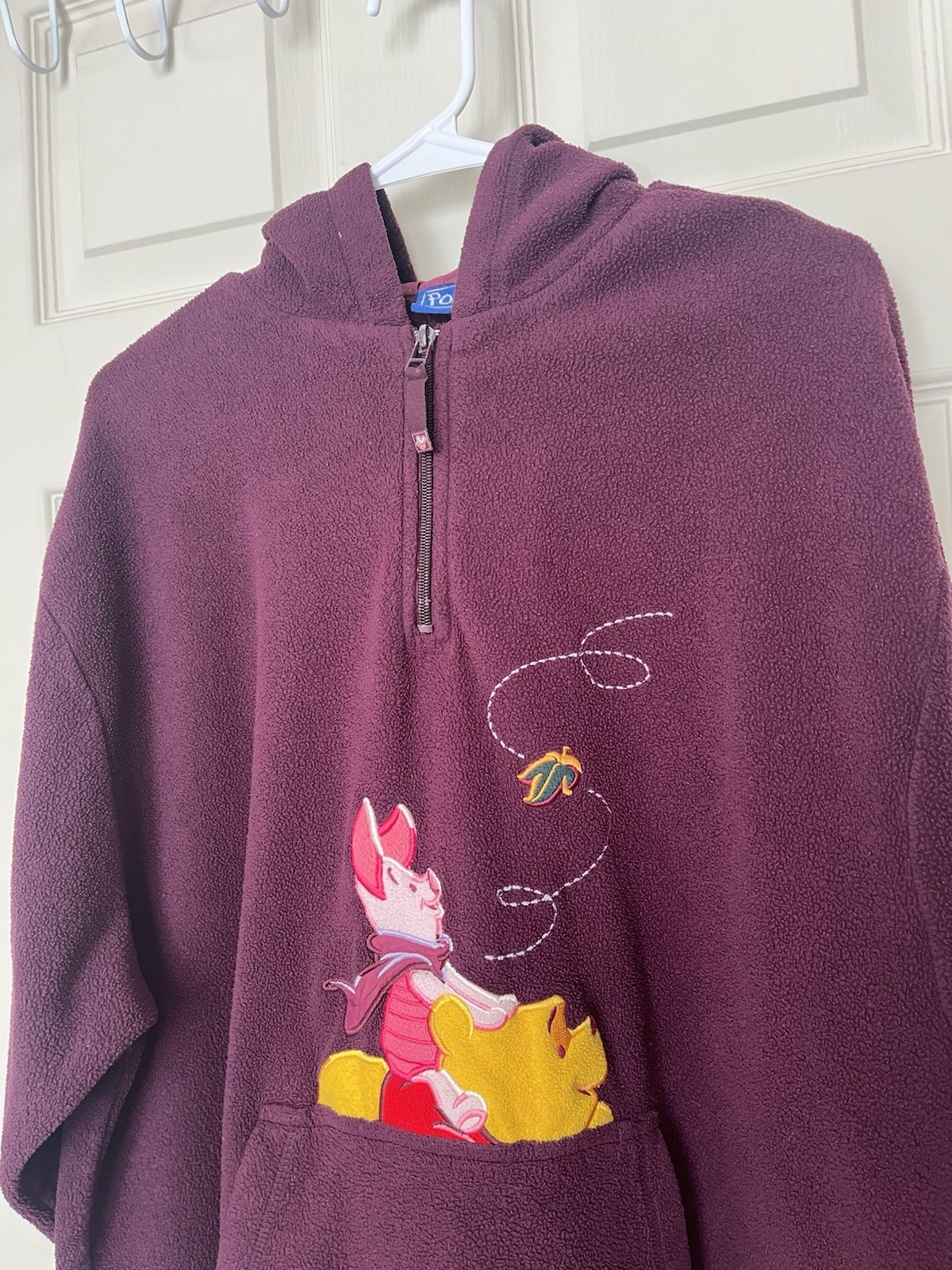 как выглядит Vtg Disney Winnie the Pooh Fleece Embroidered Hoodie Quarter Zip Womens XL 90s фото