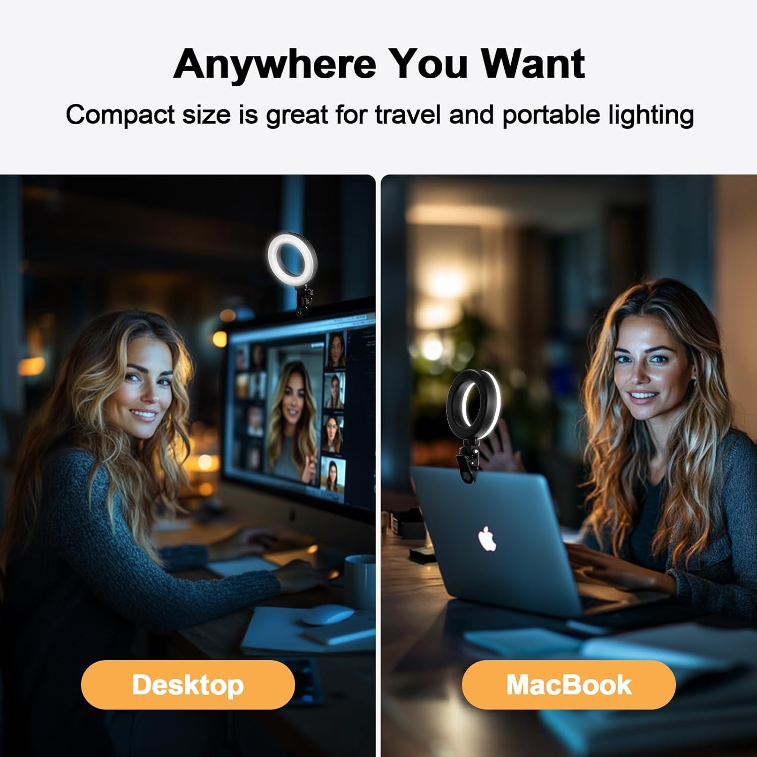 Clip-on Ring Light for Laptop Computer, Universal Phone/Tablet/Webcam Mount -...