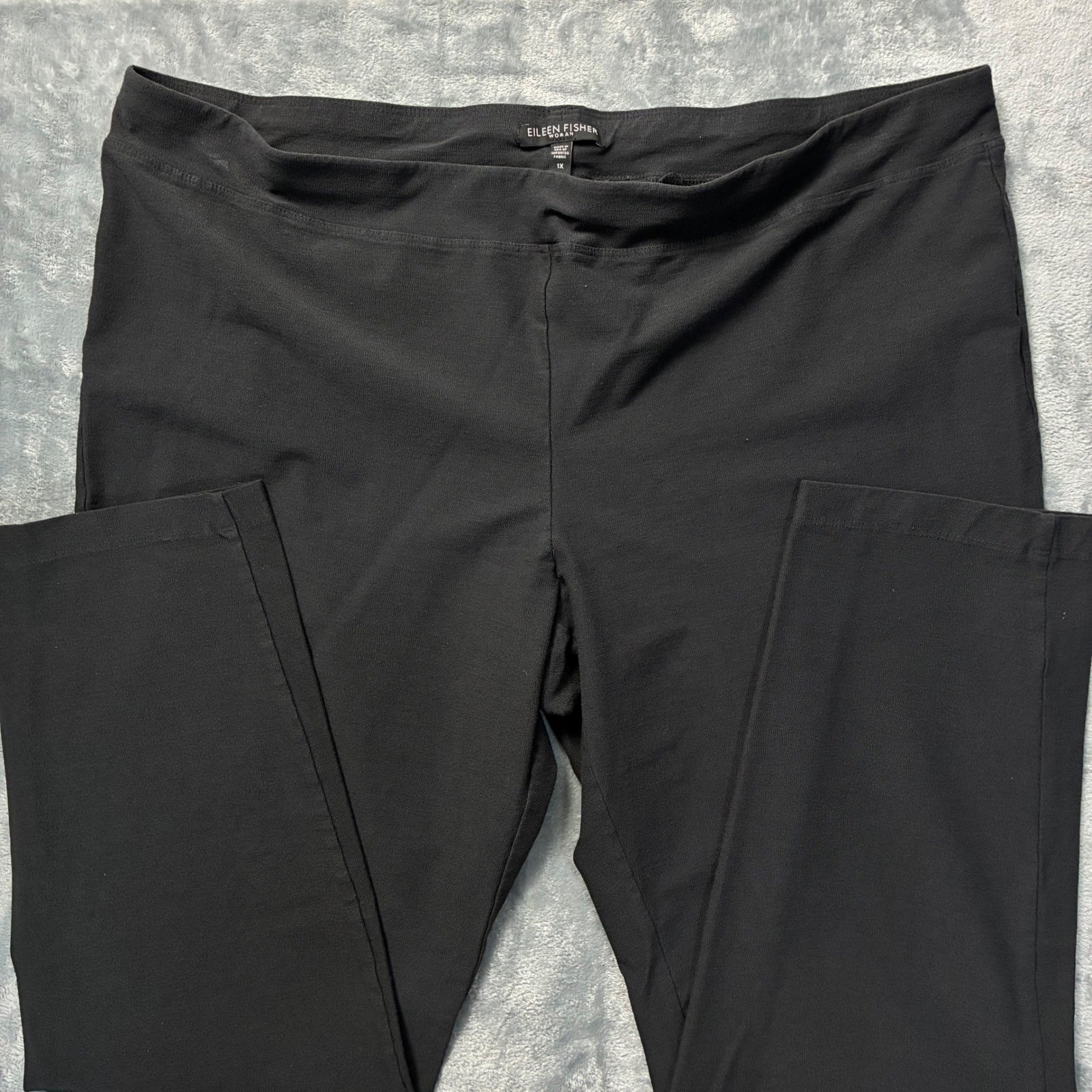 как выглядит Eileen Fisher Black Pull On Straight Leg Crepe Pants Elastic Waist Women 1X фото