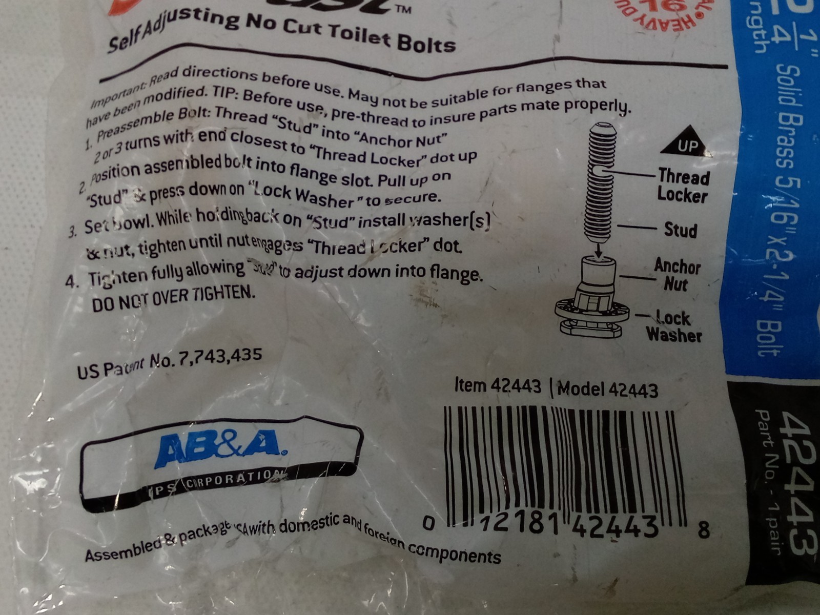 Lot Of 5 Set Fast Self Adjusting Toilet Bolts No Cut 5/16 x 2-1/4 Part 42443