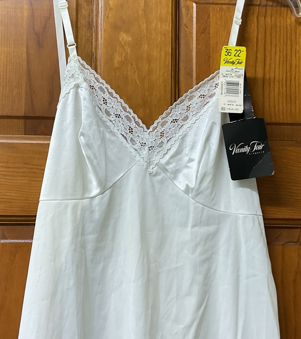 Vtg Vanity Fair V-Neck Nylon Lace 22 Full Length Slip White Size 36 NWT