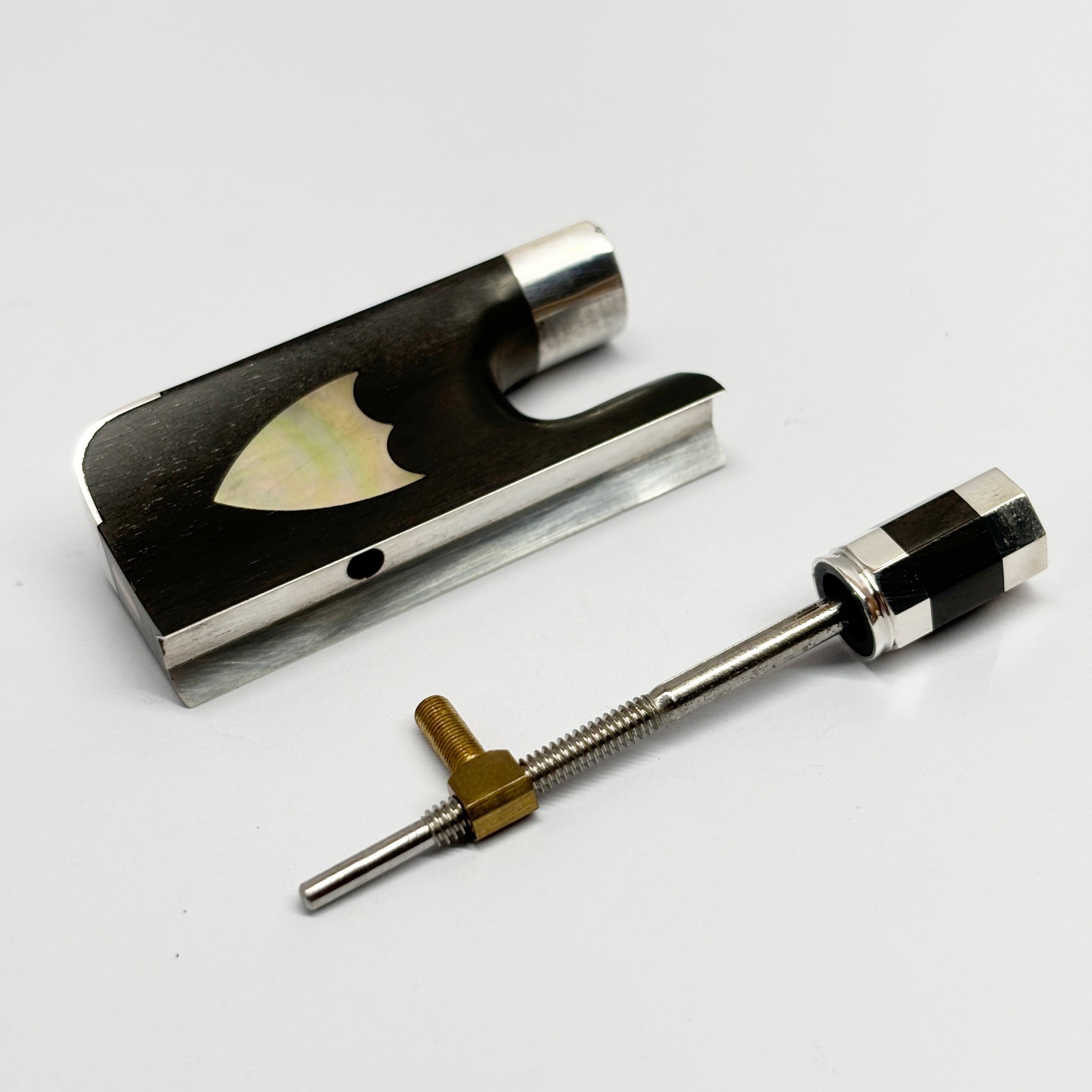 как выглядит 4/4 Silver Parts Ebony Frog Screw Button fit Cello Bow Abalone Sheild Round фото