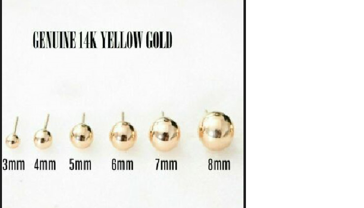 14k Yellow Gold Ball Stud Earrings - Genuine Gold - 7mm