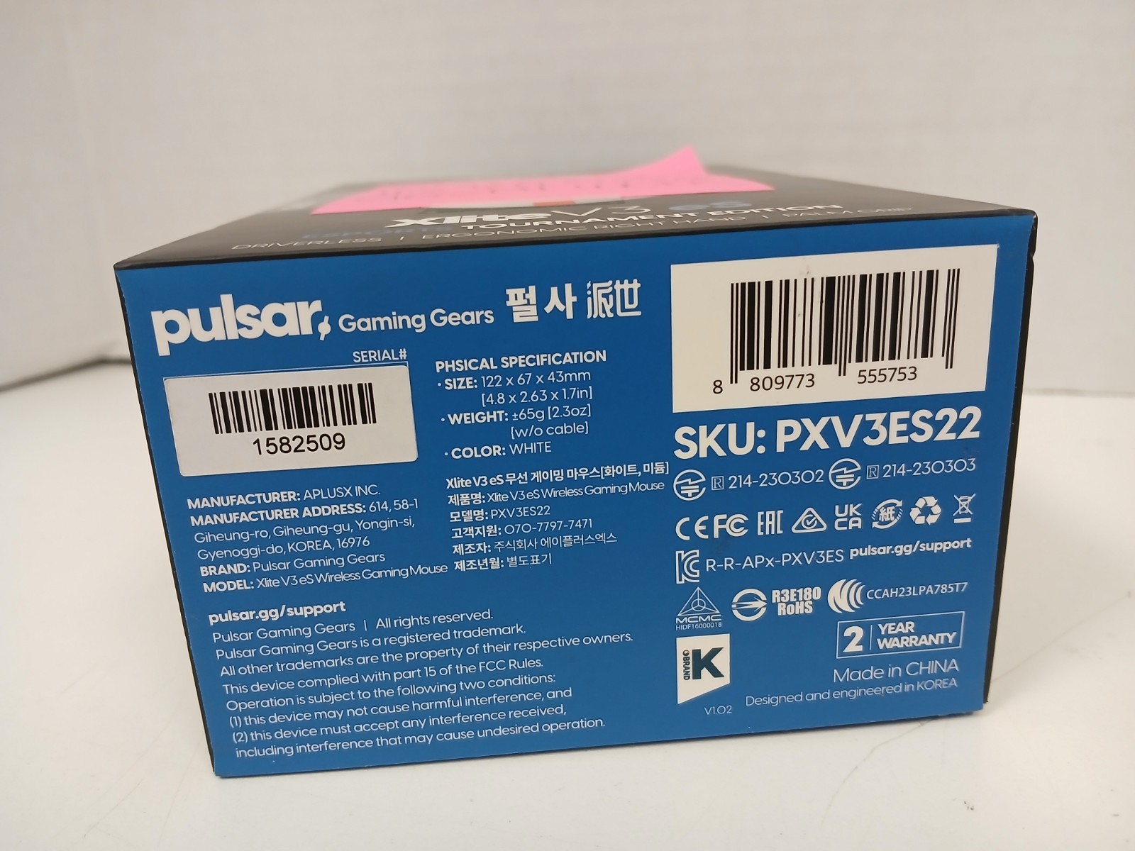 Pulsar Xlite V3 eS Size 2 Medium Wireless Gaming Mouse, White FOR PARTS