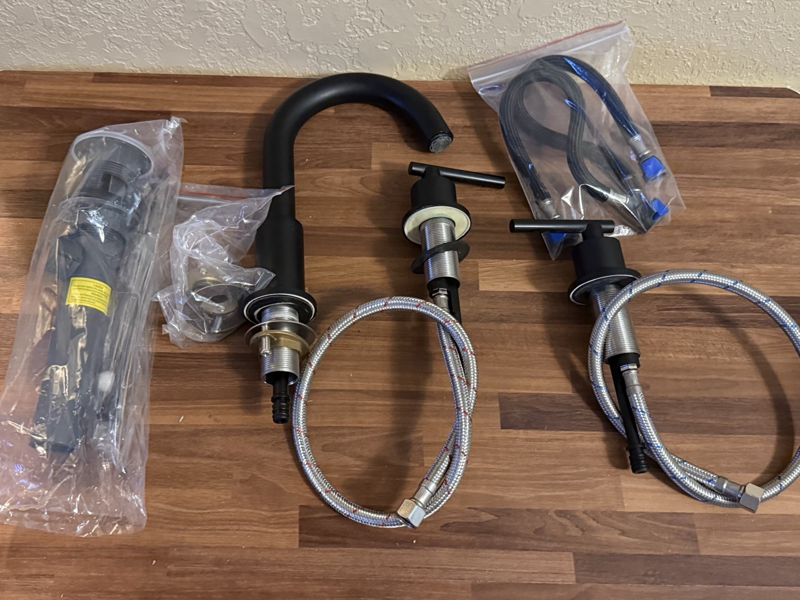 как выглядит Bathroom Faucet 3 Hole, Matte Black Bathroom Sink Faucet with Pop up Drain, 8 In фото