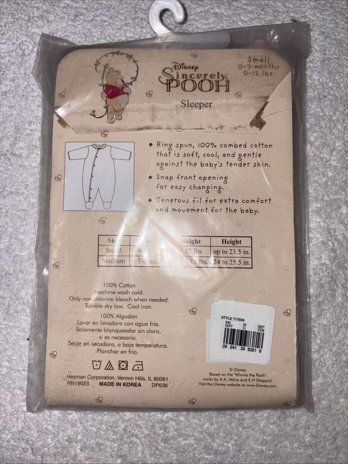 Disney Sincerely Winnie Pooh One Piece Sleeper Newborn Pajamas Sleeper Small 0/3