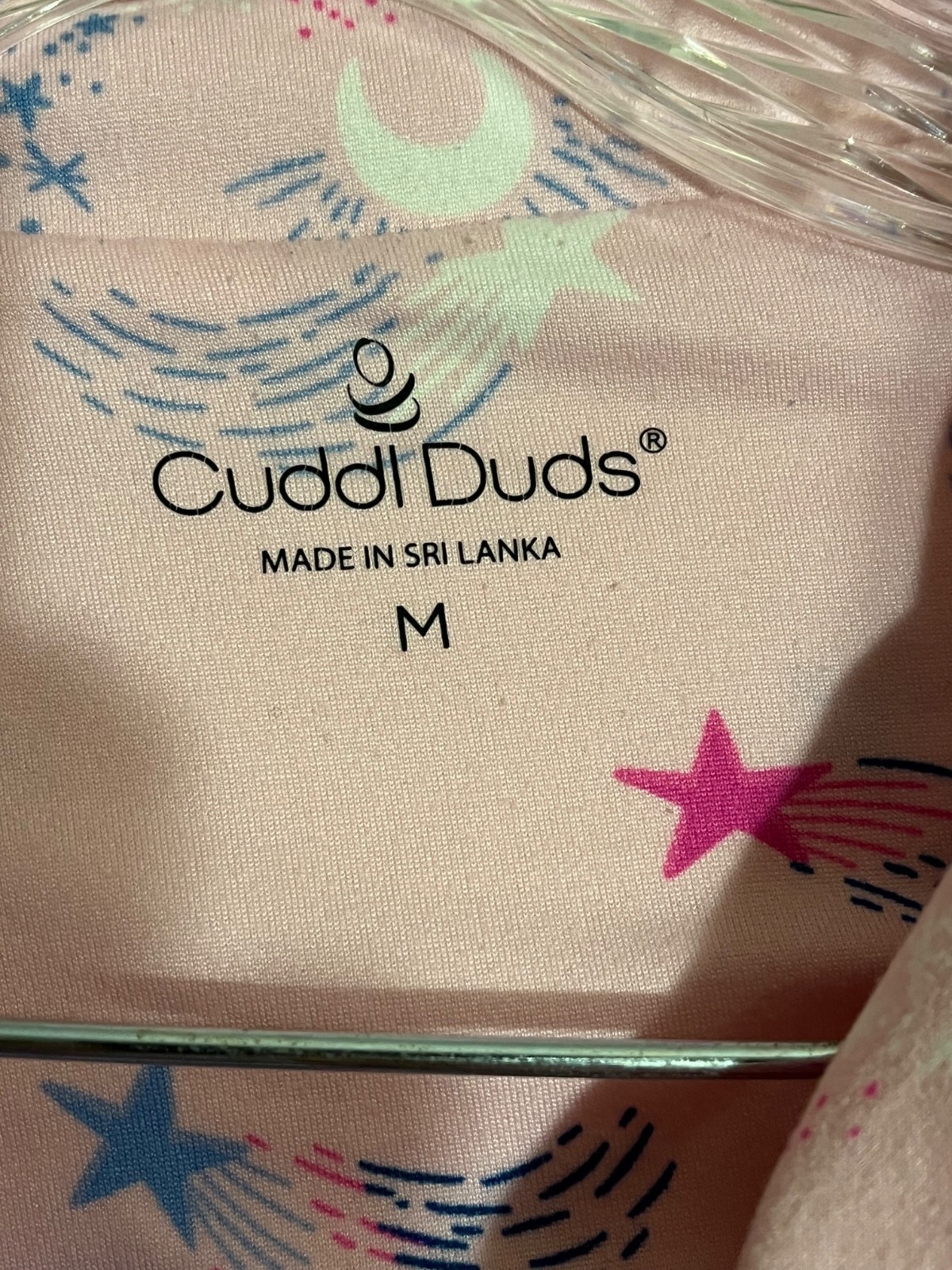 Cuddl Duds Pink w Stars 2 pc Pajamas Long Sleeve Button Front Top Pants Medium