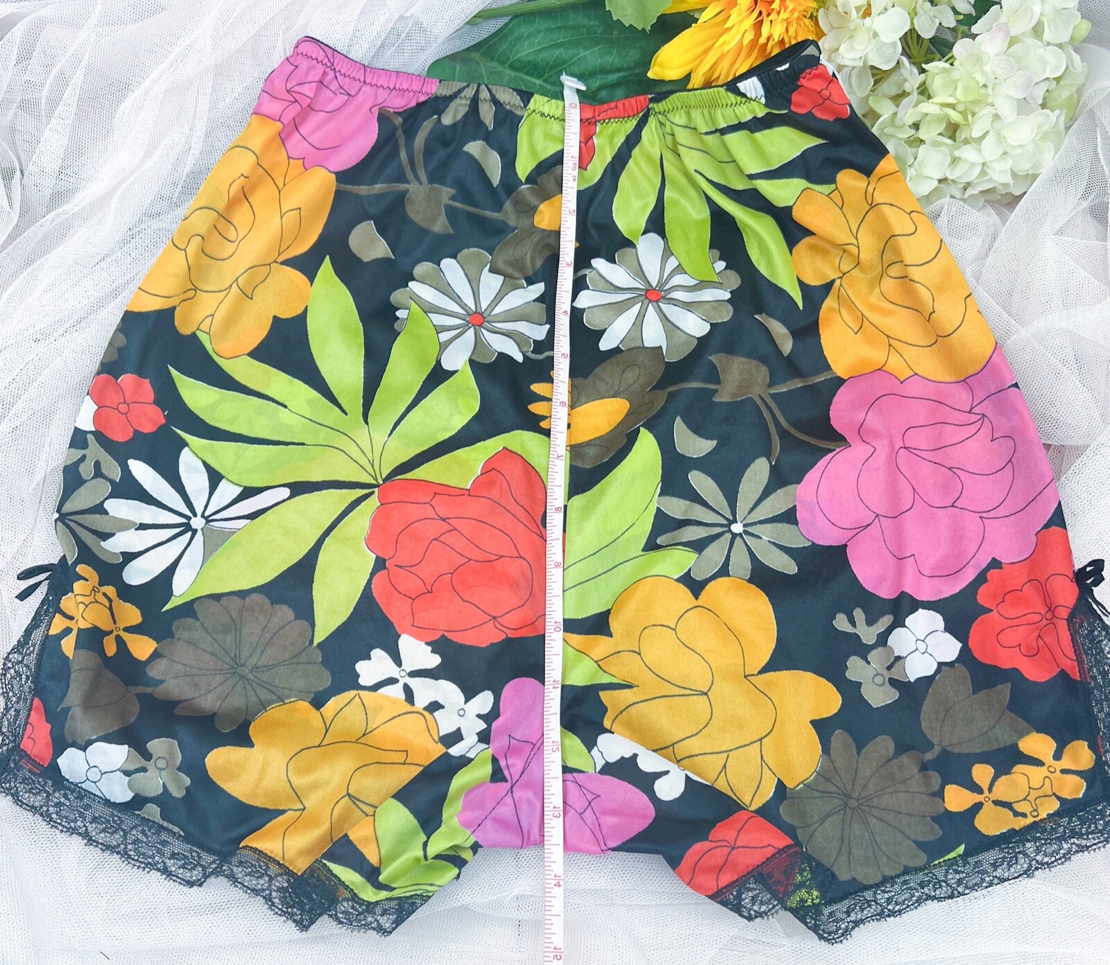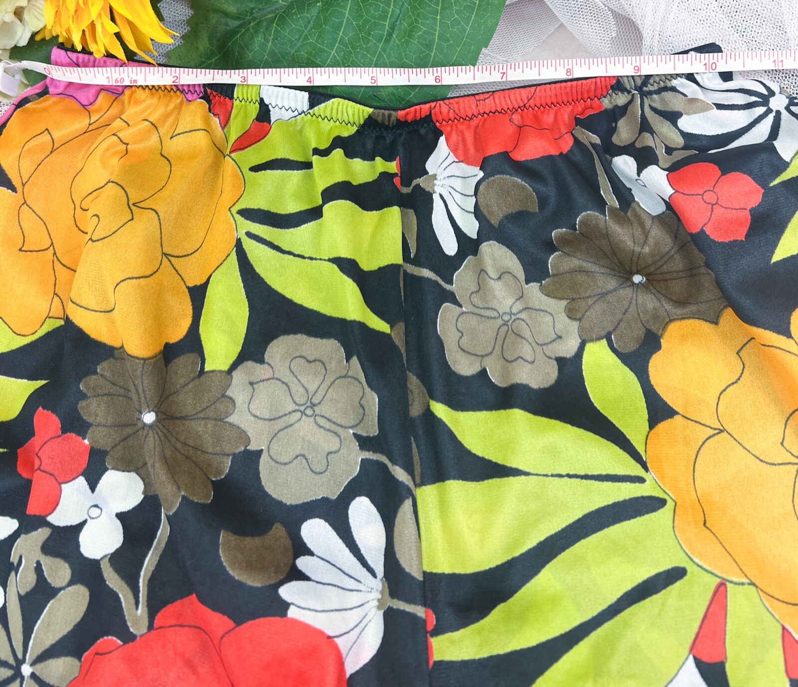 как выглядит RETRO 1970 s Handmade Sleep/Lounge Shorts BRIGHT Multicolor Floral Silky-Sz XS фото