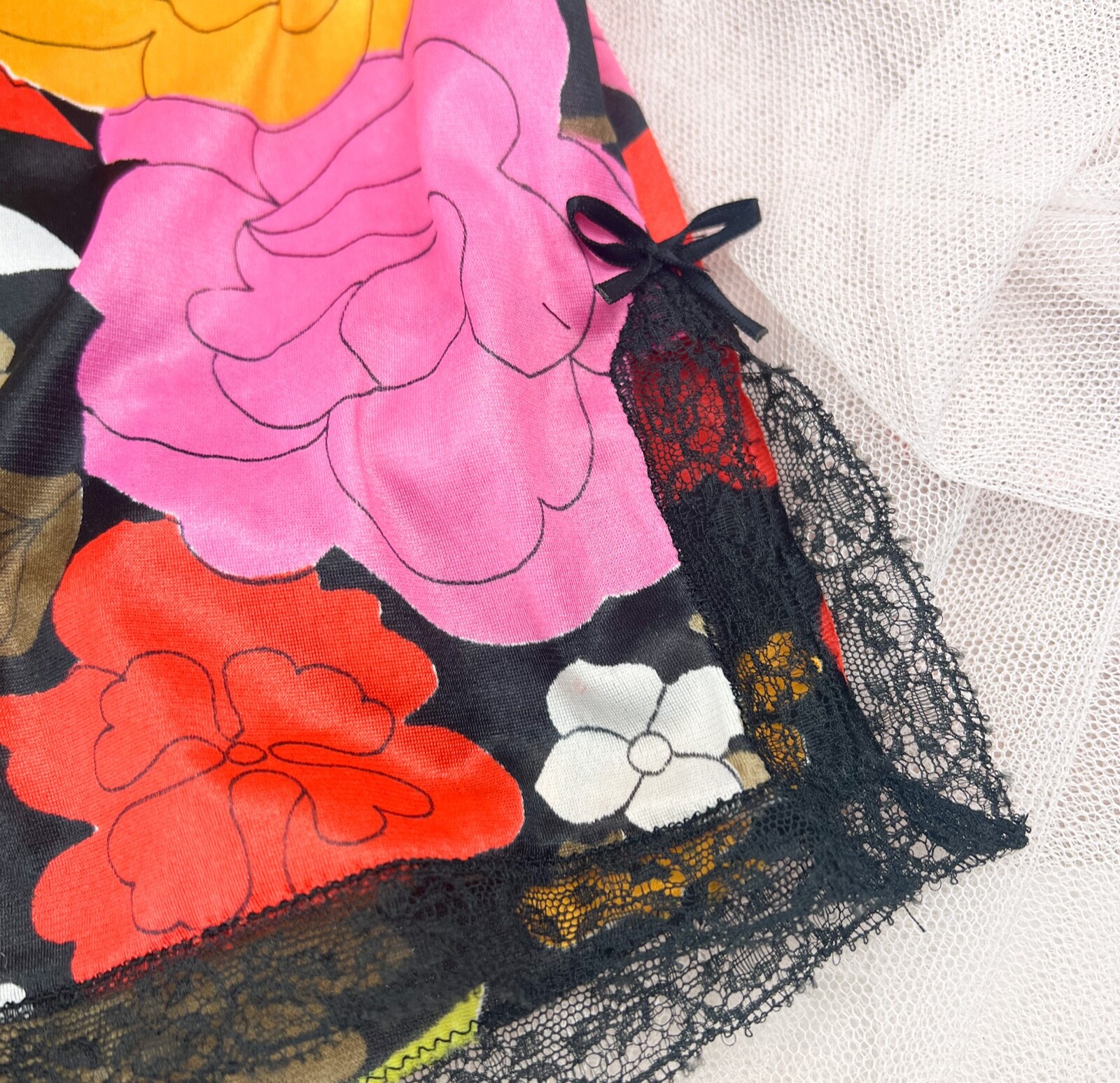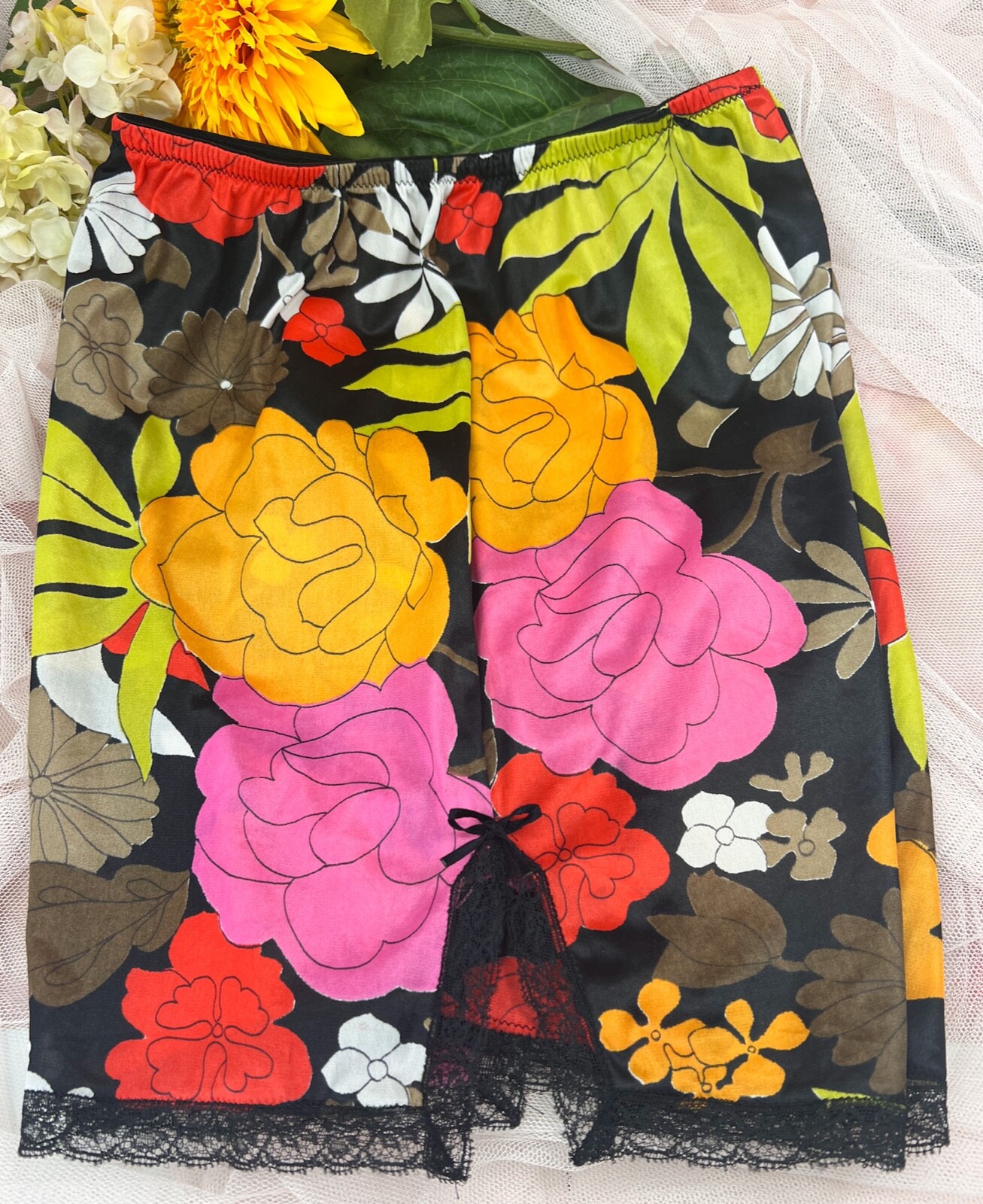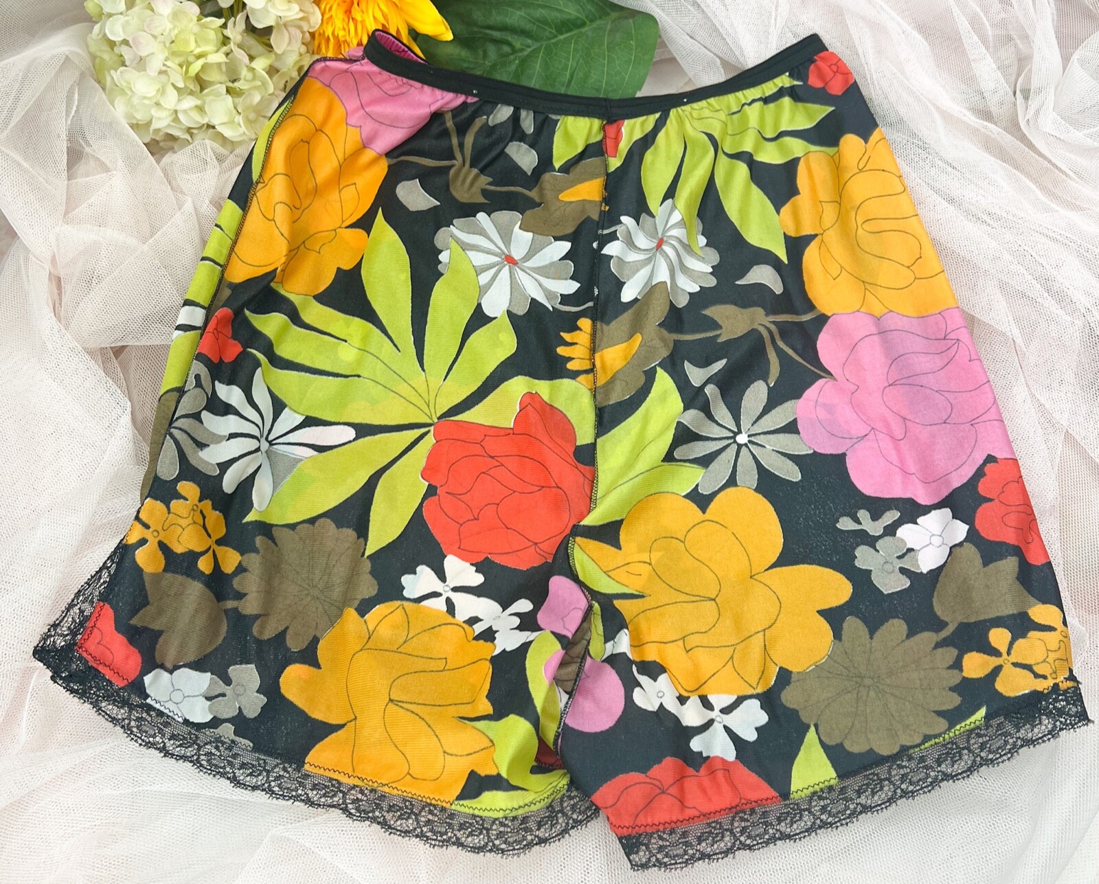 RETRO 1970 s Handmade Sleep/Lounge Shorts BRIGHT Multicolor Floral Silky-Sz XS