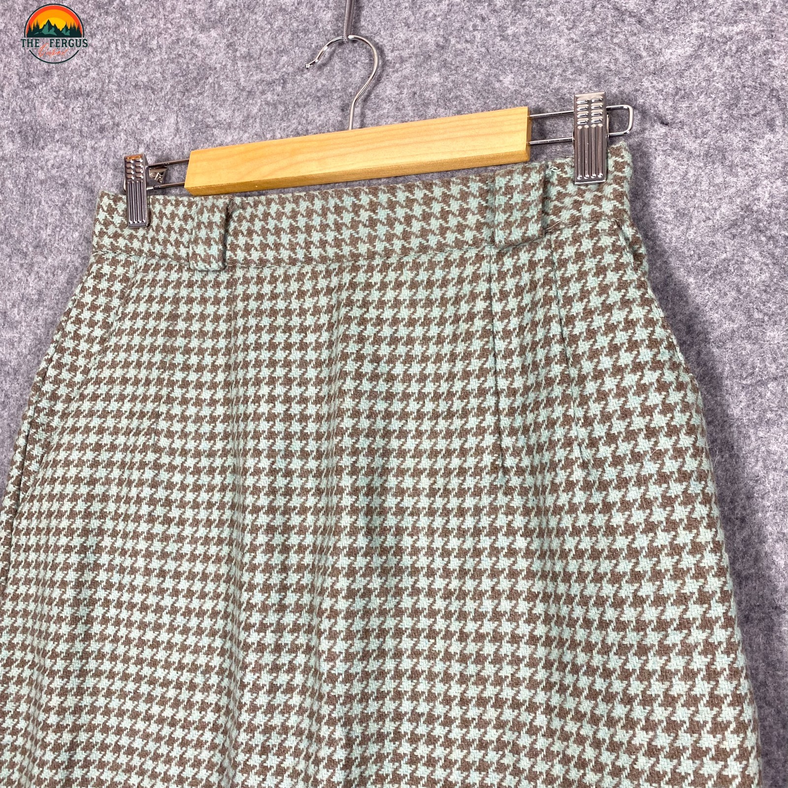 как выглядит Norton McNaughton Vintage Pencil Skirt Green Brown Houndstooth Women